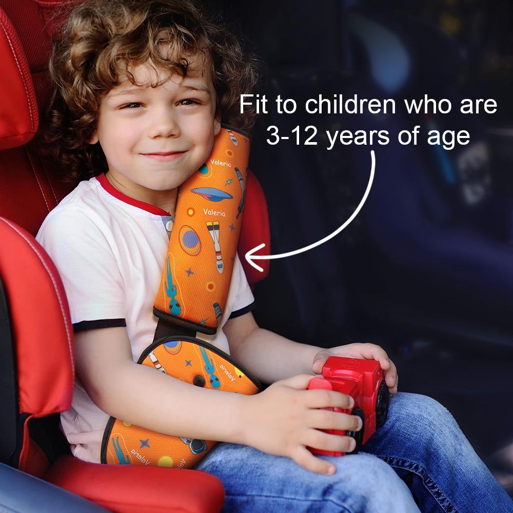 We provide two funny and cute patterns for kids to choose: Space and Alien. You can also engrave your own name on the seat belt. Just Personalise it by yourself!