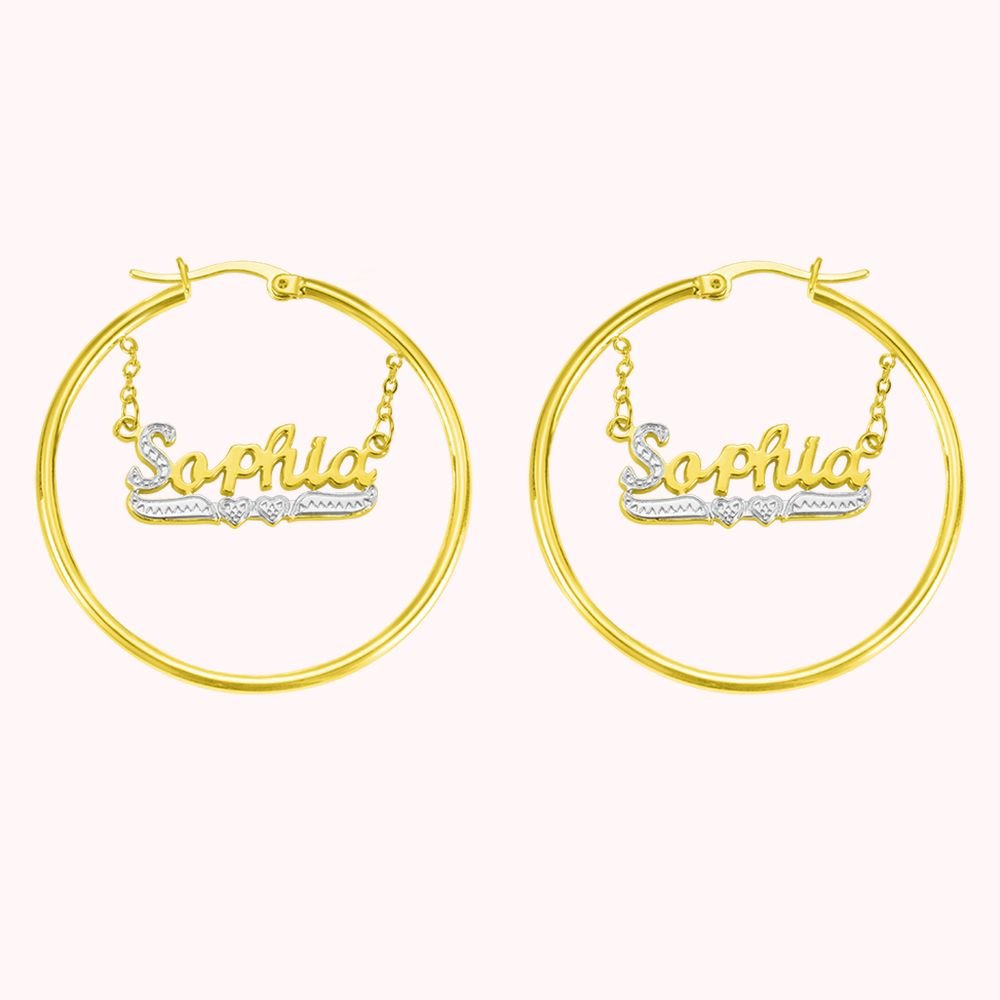 • This is a very distinctive earring. The customized name part is wrapped inside the earring and hung on the earrings with two thin chains, which will slightly swing as you walk and run. This design makes the earring more changeable to show your unique personality.