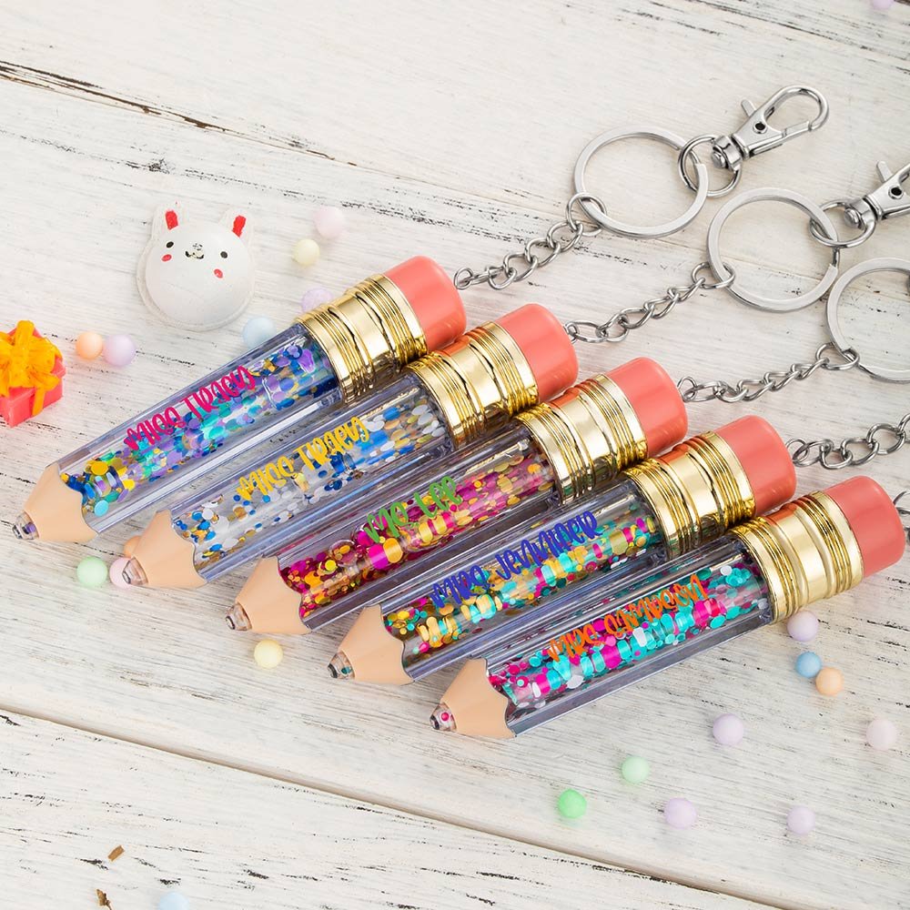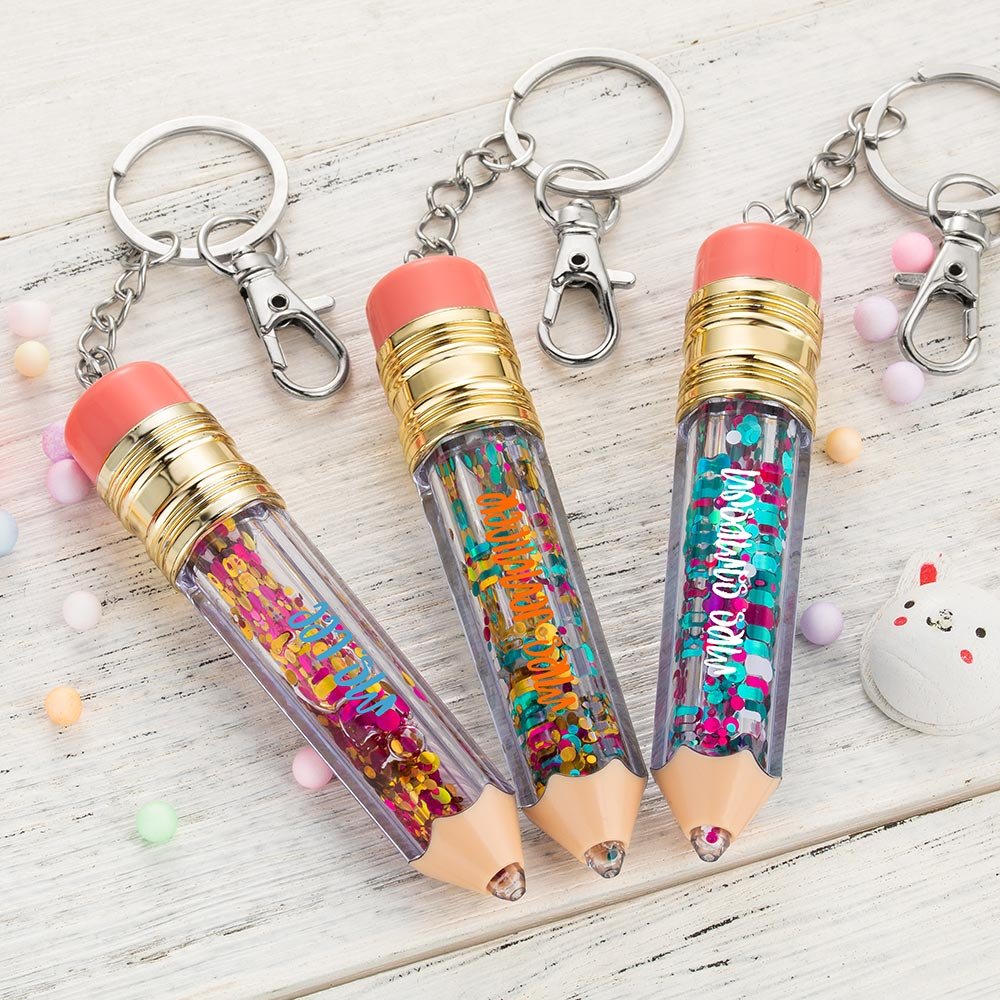 We provide a variety of colours of sequins to choose from, you can choose the colour you like according to your personal preference. In addition, what is surprising is that you can also customize any copy you want on the pencil keychain. It is worth noting that the upper limit of the number of characters in the copy is 15. Personalised copywriting makes the product more unique and meaningful.