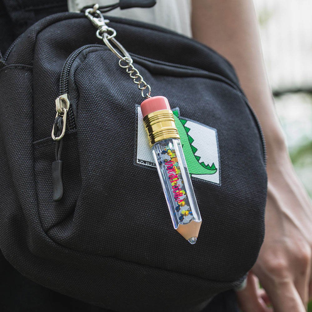 This custom keychain adopts the shape of a pencil in appearance design and adds very delicate sequins to make it look cute and delicate.
