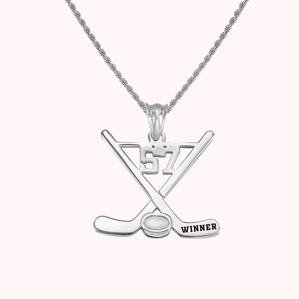 •This ice hockey memorial necklace with two cross ice hockey sticks and engraving words can remind the wearer of his special number in the sport. Perfect for ice hockey players or fans to memory their rewarding time and keep it close.