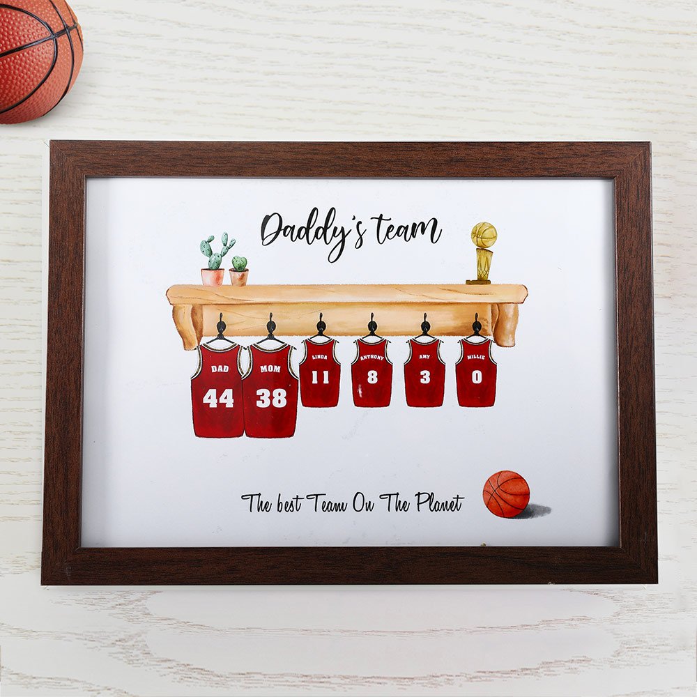 • Personalization Family Print: This print is perfect for any basketball fan out there! It comes fully personalised where you can personalise the title, the shirts, names, numbers, and you can even add a message along the bottom. The number of customizable people is limited to 6 people, which can meet your need. We have been committed to customized gifts for several years, and we will surely give you the best experience.