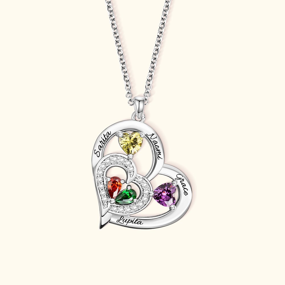 Personalised Engraved Family Heart Necklace with 1-10 Birthstones and Names Mother's Day Birthday Gift for Women