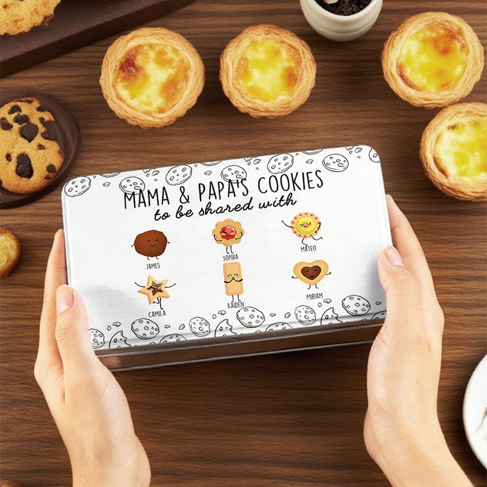 You can customize 1-12 cartoon Biscuit shapes, add names of family members, and write a warm title and text. Every detail, from the Biscuit designs to the personalization, makes this tin uniquely yours, turning it into a heartwarming keepsake full of family love.