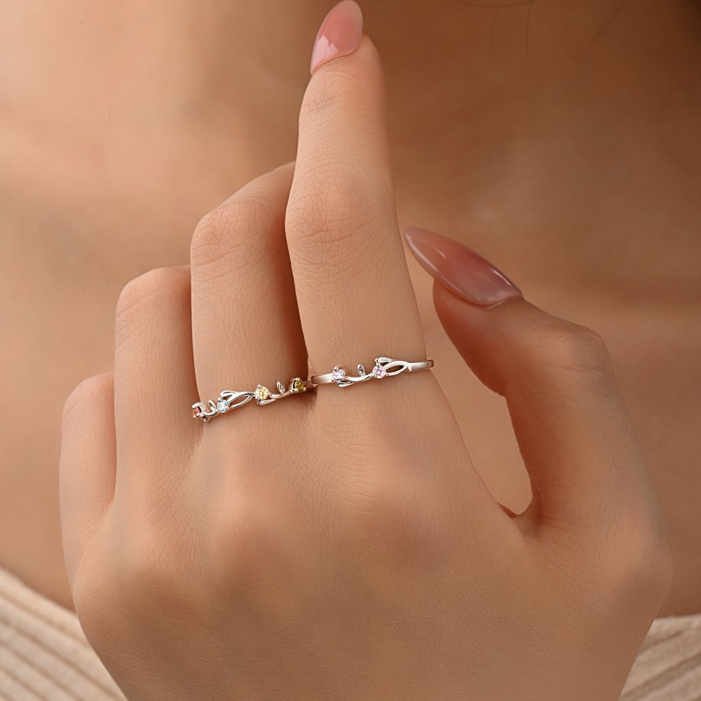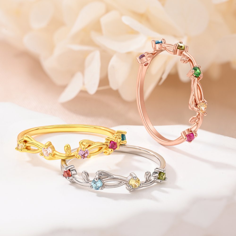 Elegant vine and flower design, naturally layered and aesthetically pleasing. Made with 925 sterling silver, it can be customized with 1-6 birthstones, with colourful birthstones scattered throughout, creating a gentle, romantic, and subtly luxurious feel.