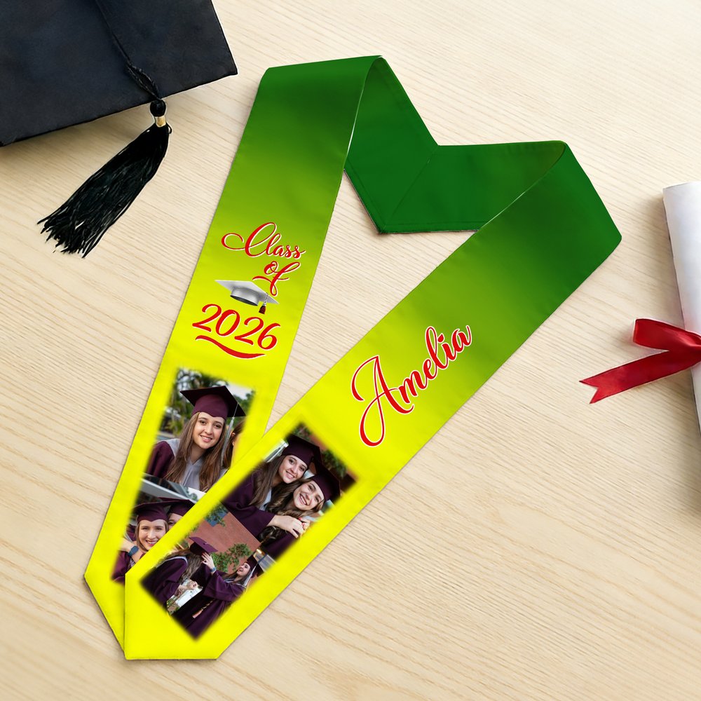 Personalised 2/4 Photos Design Gradient Colour Graduation Sash with Name and Year Graduation Celebration Gift for Class of 2026 Graduates