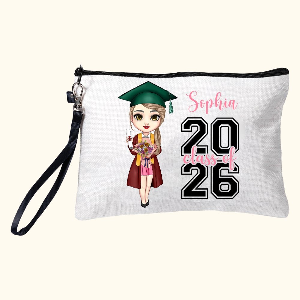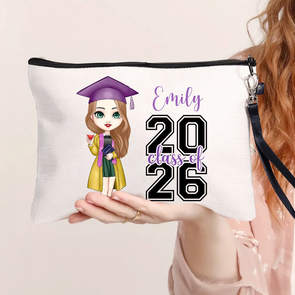 This makeup bag is inspired by cartoon graduates and can be customized to showcase the graduate's unique style and achievements. The words "2026" on the background not only emphasize the graduation year but also add a sense of the times to the overall design. You can also customize your name on the makeup bag to make it more specific.