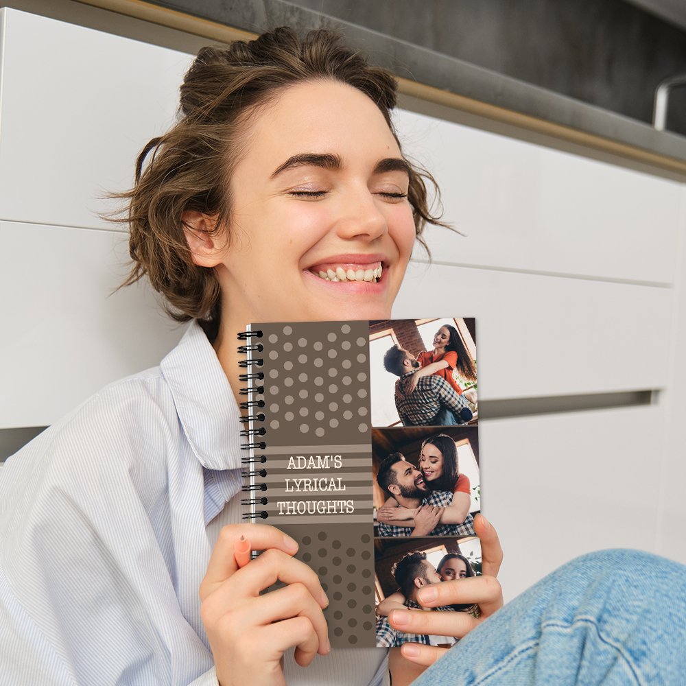 The notebook's simple design features three customizable photos on the cover, conveying a warm sentiment and a unique purpose. You can also customize the notebook with the recipient's name to make it one-of-a-kind.