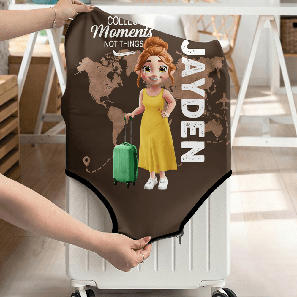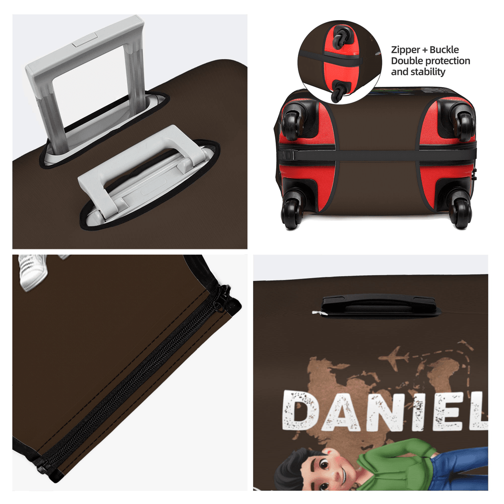 Our luggage cover centres on a cute, highly customizable 3D cartoon avatar. You can personalise the character to match a name, hairstyle, outfit, and accessories, and add travel elements like airplanes, maps, or city landmarks to create a one‑of‑a‑kind travel sticker look. With vivid colours and lively illustrations, the artwork and name layout are carefully designed for maximum visibility and charm, making your suitcase instantly recognizable on the baggage carousel.