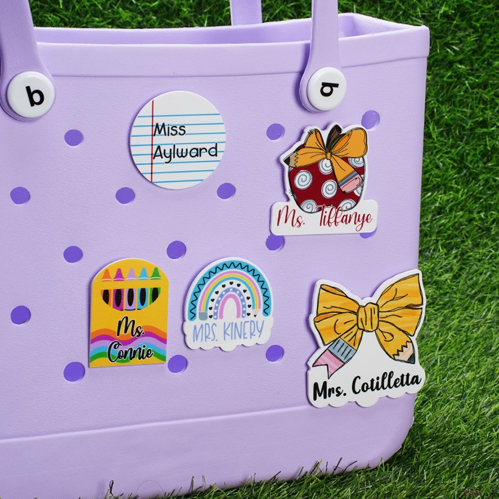 Our lightweight and compact design ensures that this Personalised accessory won't weigh you down, and can be easily hung from a bag, backpack, or anything with a hole in it for easy portability. The 3D-printed customization element not only adds an element of personalization, but it also enhances the bag's recognizability, making it easy to identify it amongst the many that can be used as the finishing touch to a teacher's outfit, whether it be for the classroom or the cafeteria.