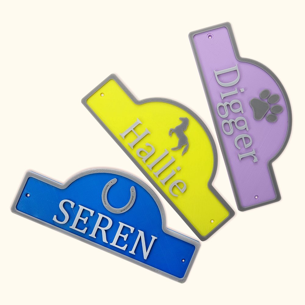 State-of-the-art 3D tech is combined with handcrafted finishing. Made of durable PLA and laser engraved to your specifications. These stable name signs are lightweight, durable, and will not rust or corrode. With its intricate 3D design, the pattern on the door sign comes to life, creating a truly eye-catching and mesmerizing effect. The fine lines and delicate curves are carefully sculpted using the highest quality PLA material, resulting in a durable and long-lasting piece that will withstand the test of time. The smooth surface adds a touch of sophistication, giving the sign a polished and refined look. Nameplates Each nameplate is custom-made in your chosen background colour with a gray border, icon, and white lettering.