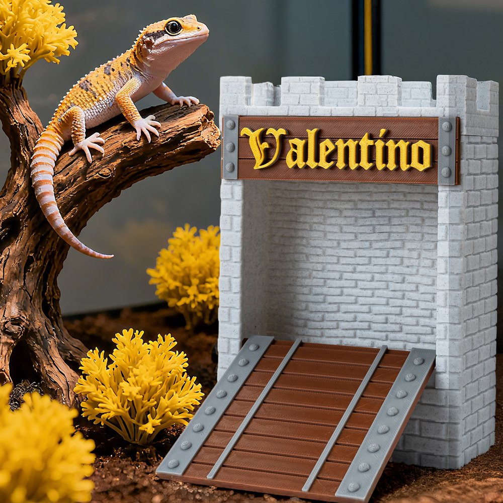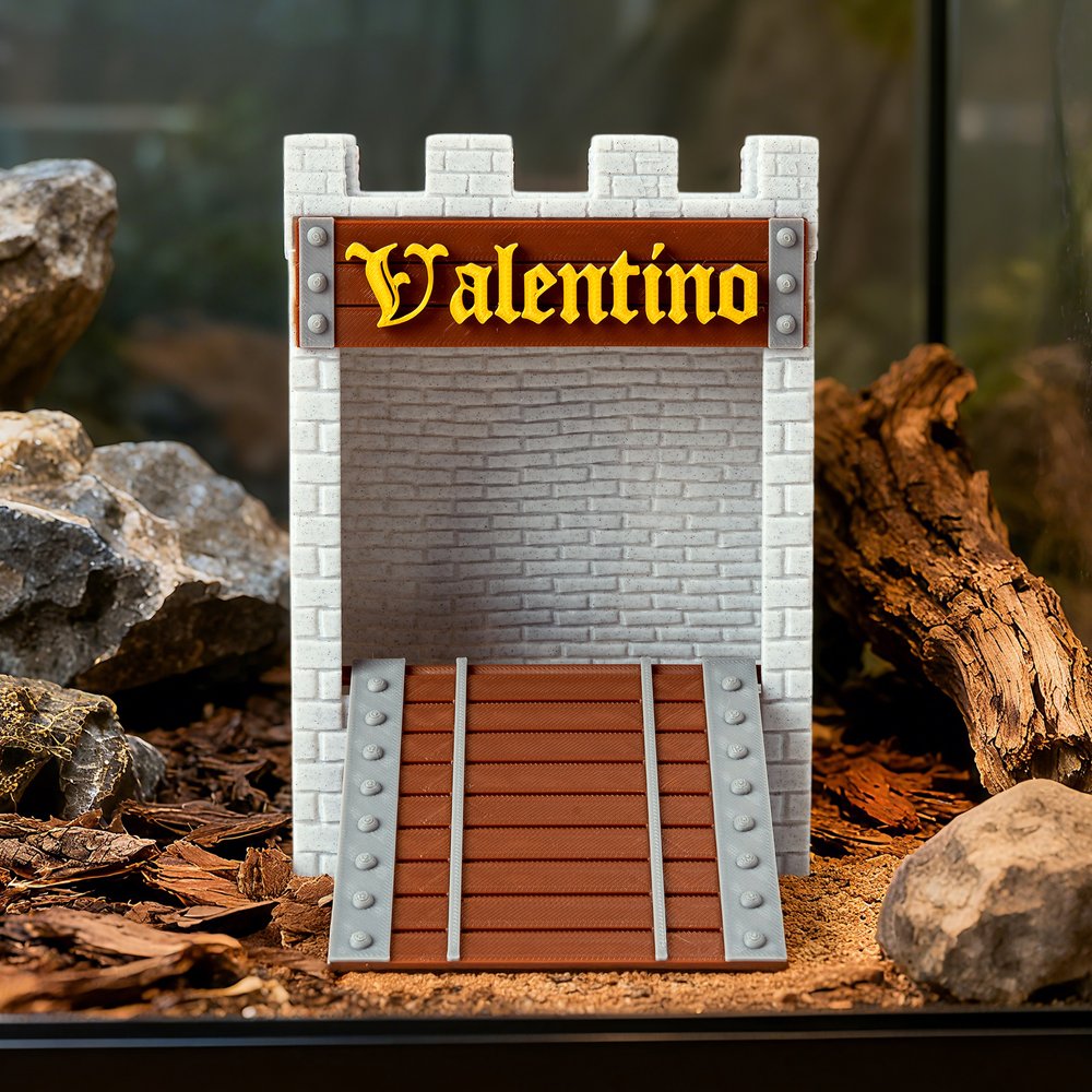 Personalised 3D Printed Castle Stone Wall Bridge Feeder Box with Text Reptile Habitat Adoption Anniversary Gift for Lizard Reptile Owners