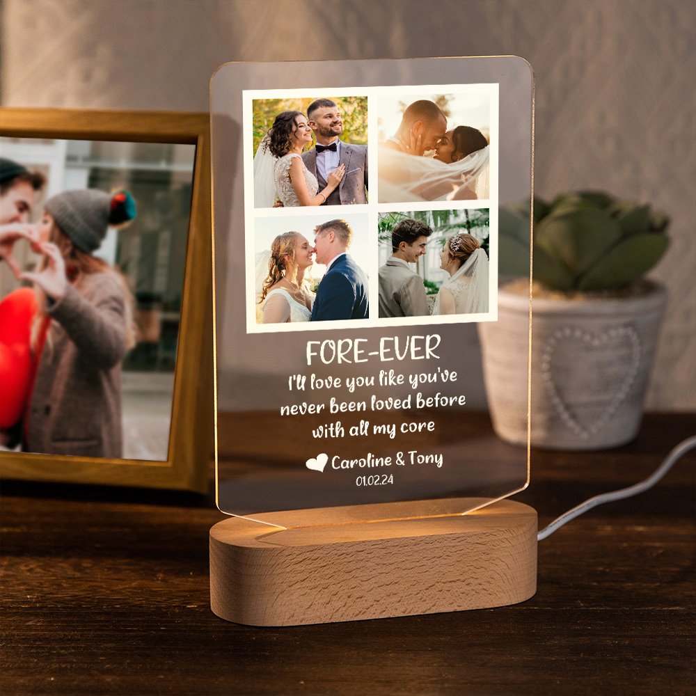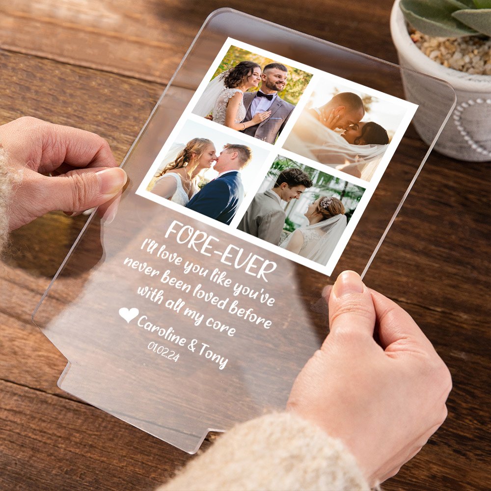 This plaque offers a truly unique and Personalised gift experience by allowing you to customize it with four of the couple's most treasured photos. Whether it's capturing the beauty of their wedding day, the excitement of their honeymoon, or the everyday moments that define their love story, this photo collage plaque brings those memories to life in a remarkable way.