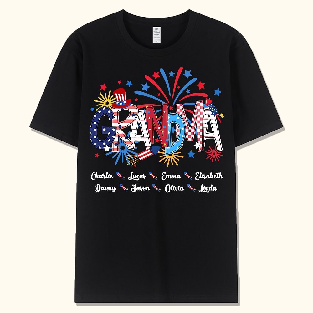 This T-shirt is designed with fireworks and the colours of the American flag. Multiple colours are available. A special t-shirt will make this year's Independence Day celebration memorable. Give this t-shirt to yourself or someone you love and celebrate independence and freedom together on this day!