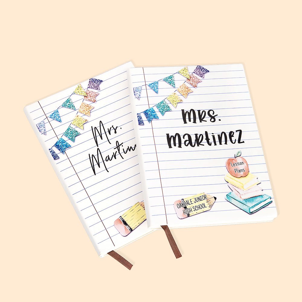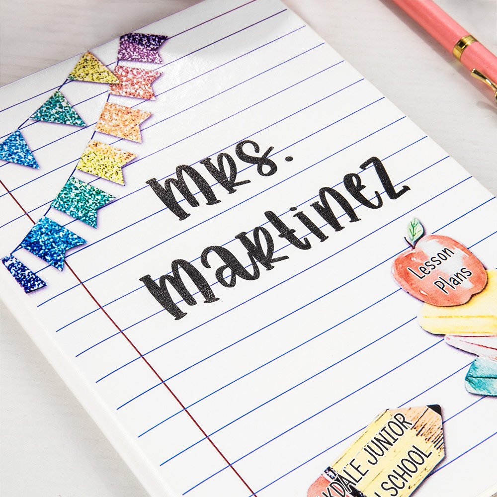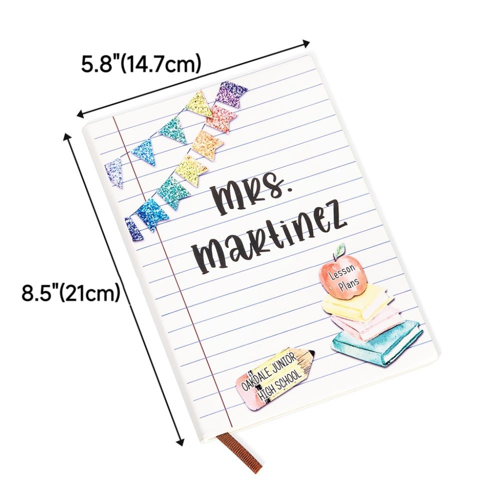 Our beautifully crafted teacher notebook features a classic pencil and apple design, with the option to customize the teacher's name and add personal messages, this is a thoughtful and practical gift for teachers or any educators that will surely be cherished.