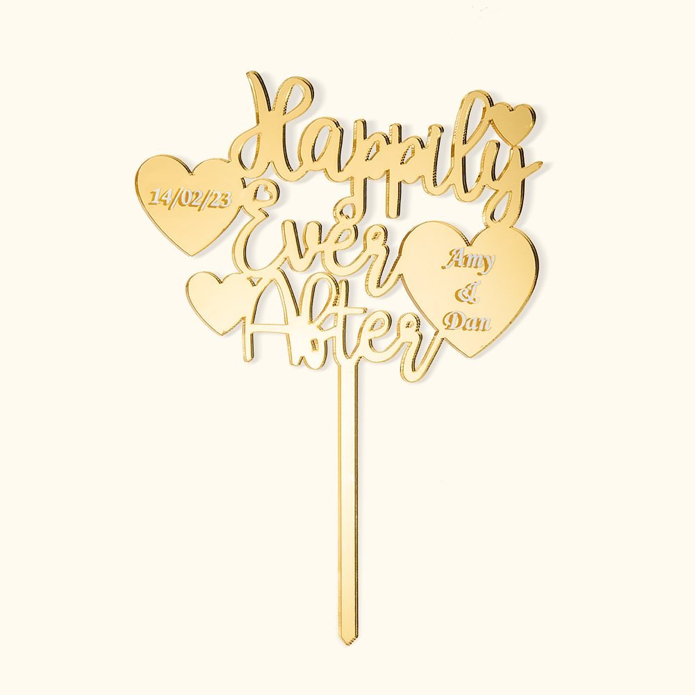 'Happily Ever After' expressed the best expectations. Suitable for Various Wedding Themes The heart-shaped design of this cake topper symbolizes love and unity, making it suitable for various wedding themes and styles. You can use this versatile cake decoration to complement any wedding theme, whether you choose a classic, rustic, modern, or whimsical one.