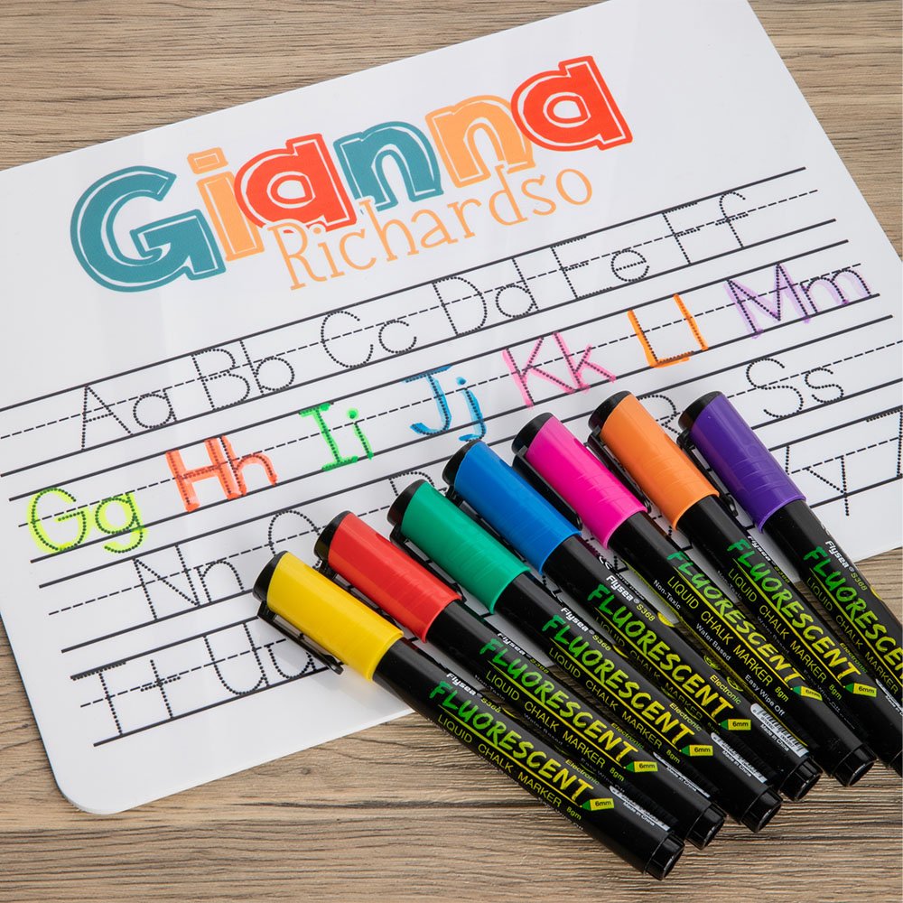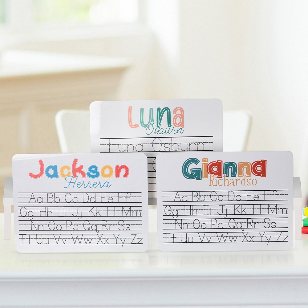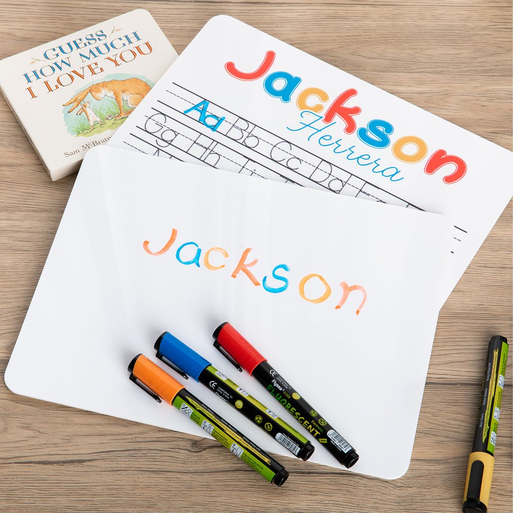 The board can be customized with your child's name directly printed on it, and it works seamlessly with dry erase markers and Rubbers. It can be easily wiped clean and reused, making it convenient and environmentally friendly.