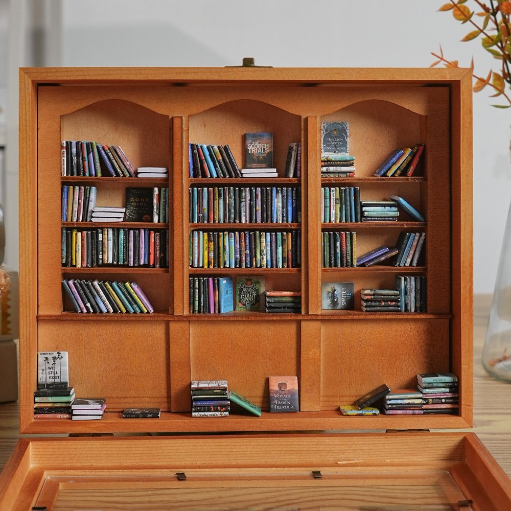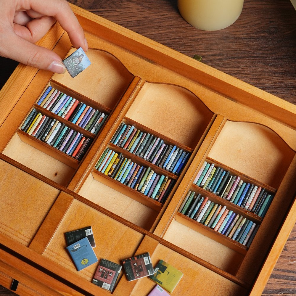 It combines the natural charm of wood with the creativity of a miniature library. The exquisite, tiny books and the option for personalised engraving make it a perfect blend of functionality and artistic beauty. It allows you to create a unique miniature library that reflects your personal taste.