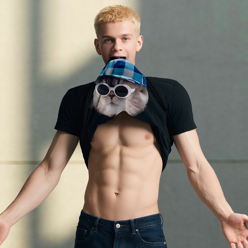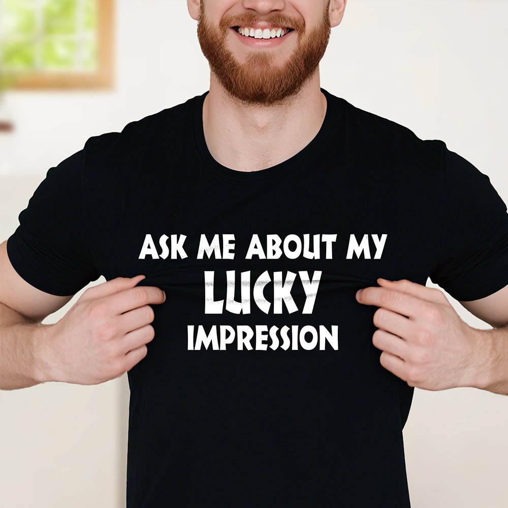 This T-shirt features a playful design with a custom photo printed inside, whether it’s family, friends, or a beloved pet. The front asks: "Ask me about ... impression", then flips the shirt to reveal the answer, adding a touch of fun to this clothing.
