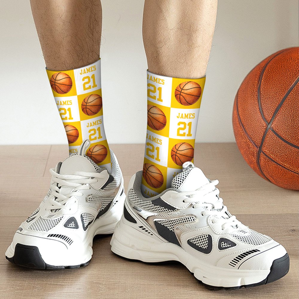 The socks are great for soccer practice, basketball games, or daily wear. The bold sport ball design and custom details give any outfit a lively touch, whether you're on the field or in the classroom.