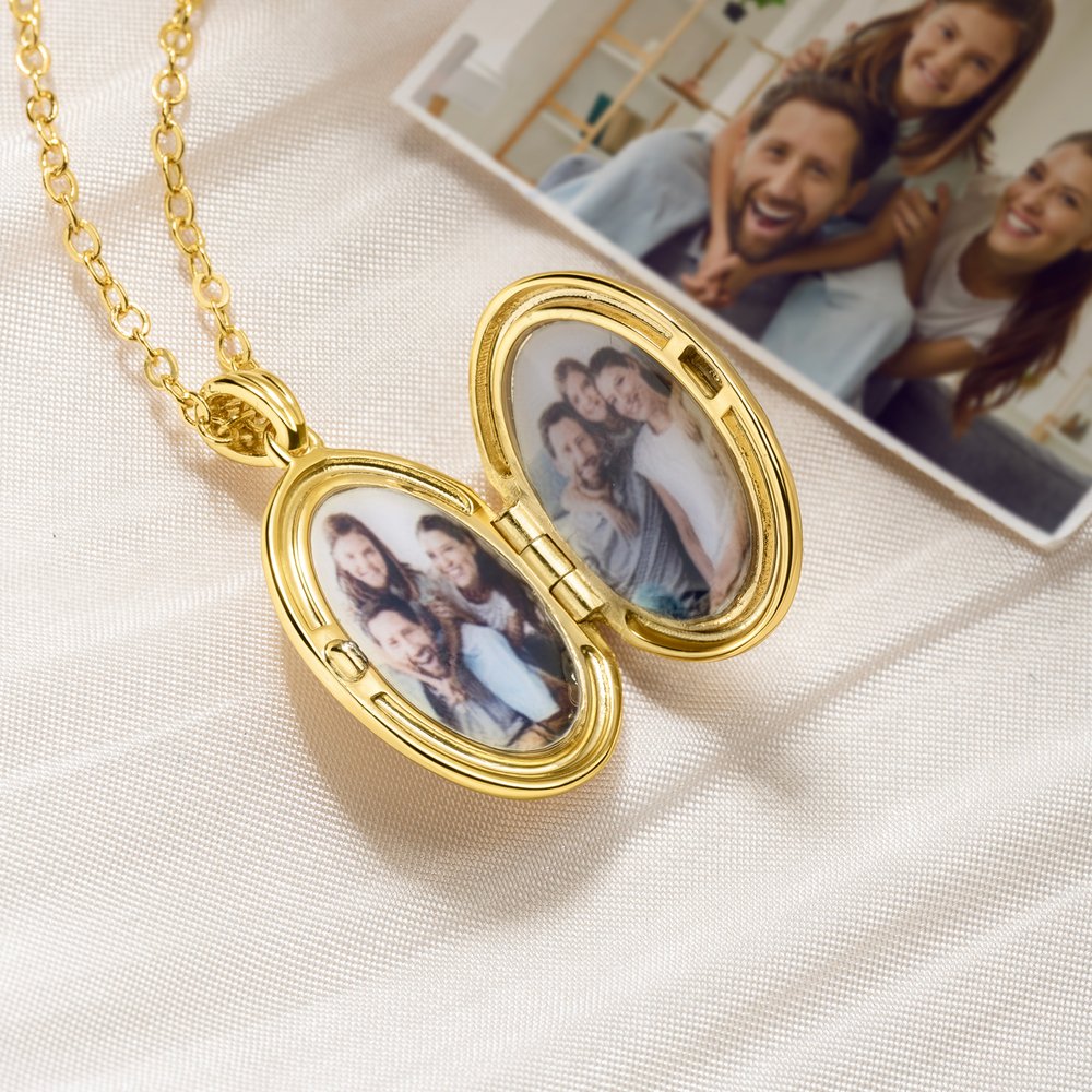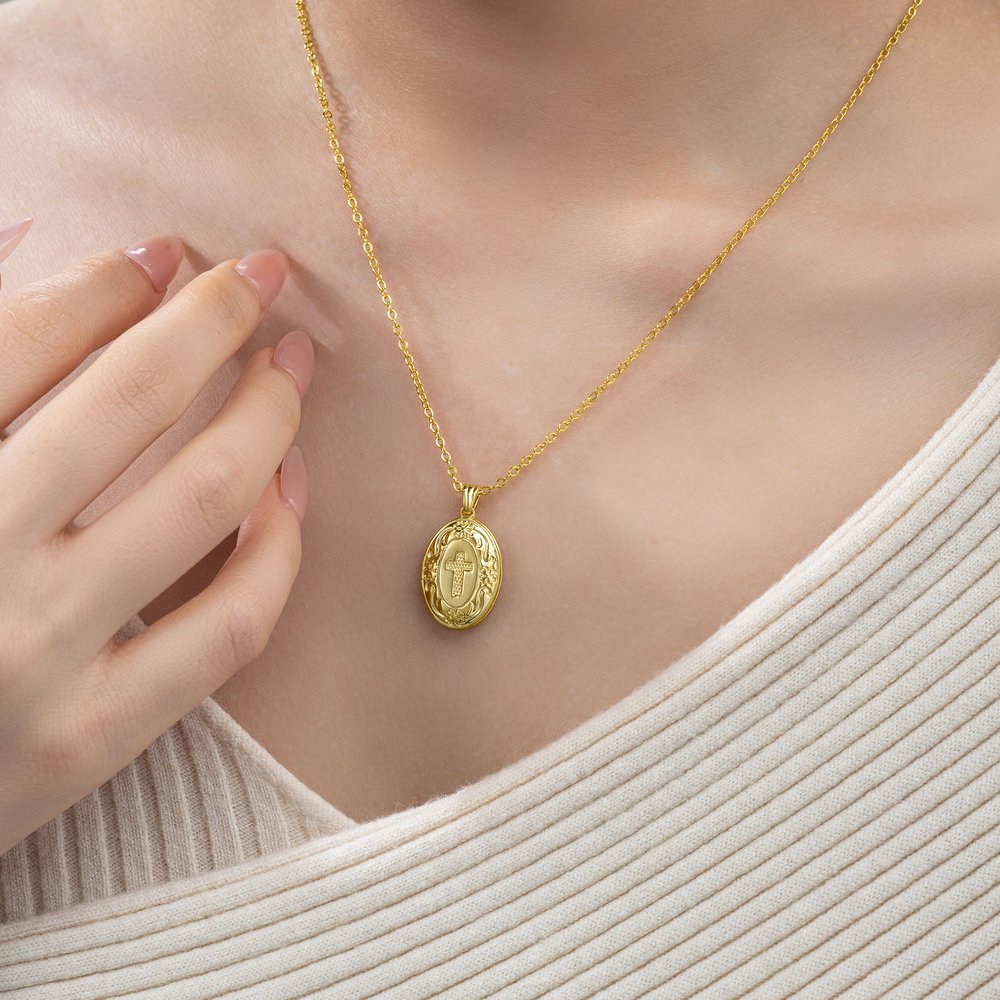 Our photo necklaces capture life's unforgettable moments, custom-designed in lockets to keep memories fresh and intimate. Stylishly decorated and paired with a cross, these photo lockets are truly stunning.