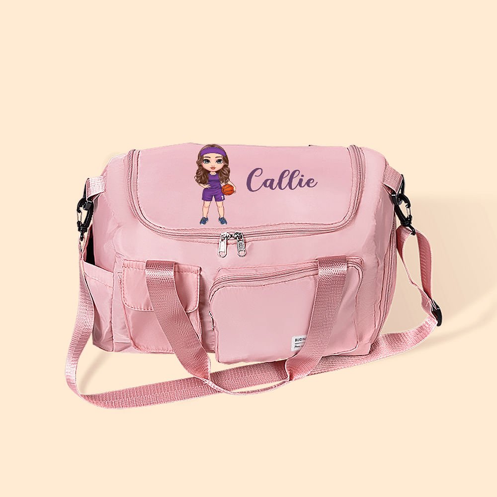 Personalised Cartoon Basketball Girl Name Waterproof Large Duffle Bag with Compartment and Shoulder Strap Birthday Gift for Basketball Lovers