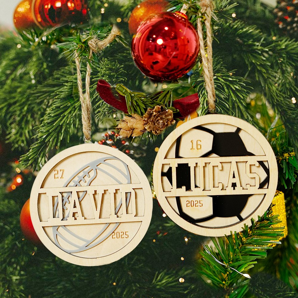 Personalised Basketball Soccer Ball Sports Wooden Christmas Ornament with Name Number and Year Christmas Gift for Ball Sports Enthusiasts
