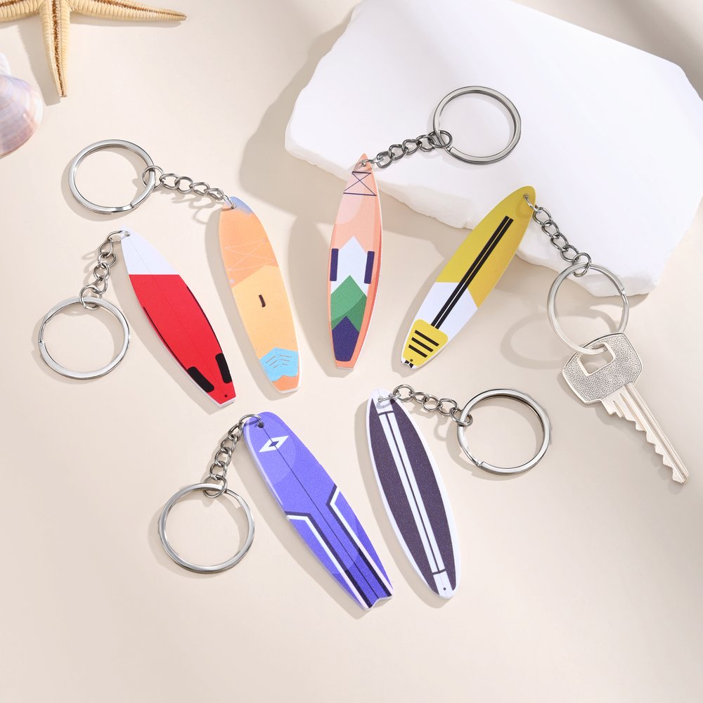 This keychain features a vibrant surfboard design. You can choose from 5 surfboard shapes and upload a photo of your surfboard, capturing the essence of surf culture and beach atmosphere, evoking the joy and excitement of ocean exploration.