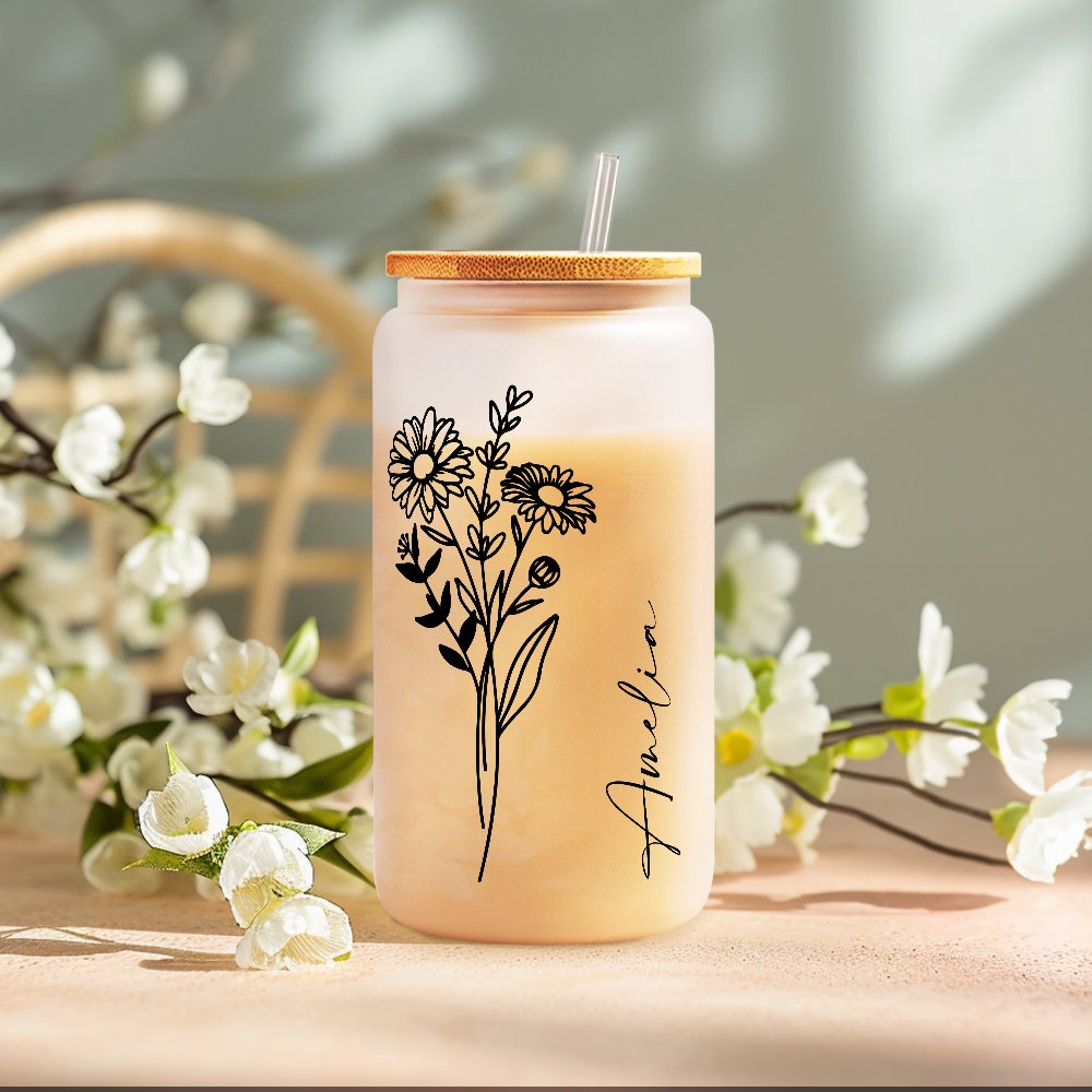 Featuring a beautifully crafted black lines birth flower design, this coffee cup allows you to choose either your or the recipient's flower. Personalizing it with a name creates a unique tumbler that celebrates individuality.