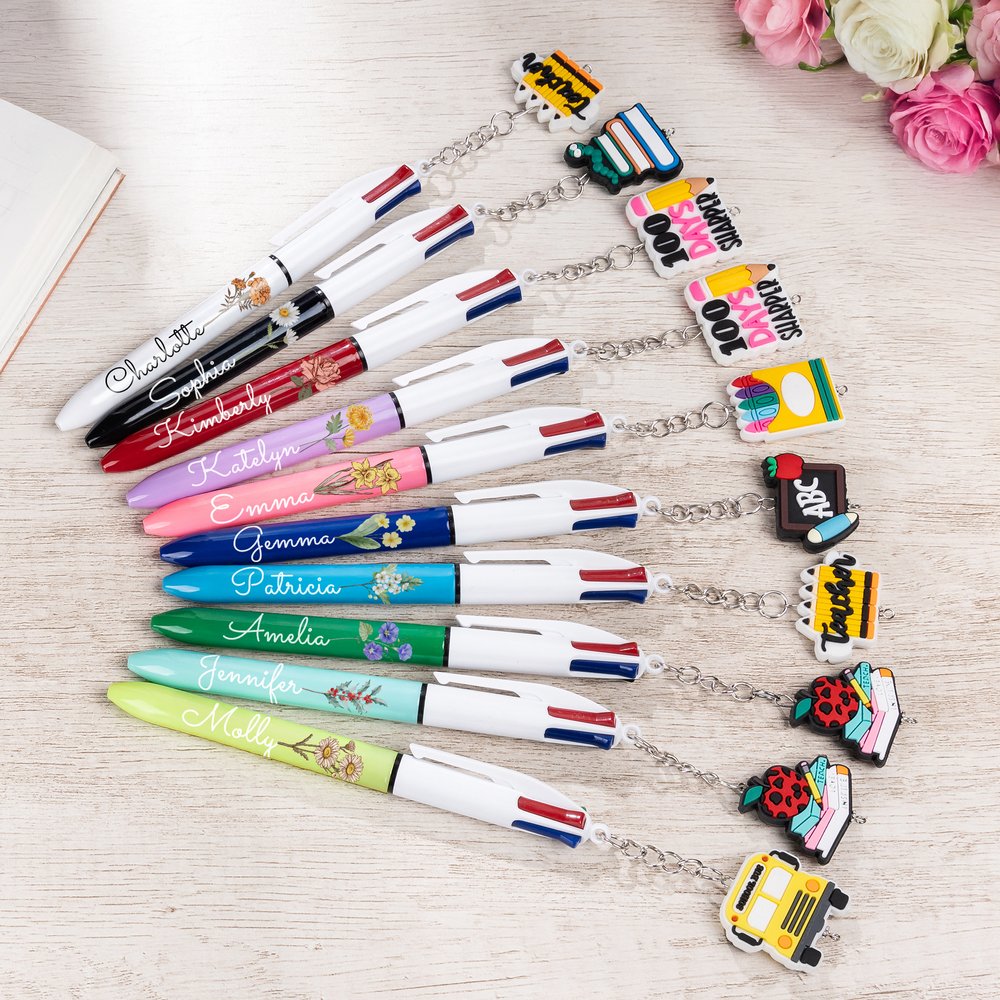 This pen features a unique watercolour or vintage birth flower design, complemented by an adorable bookworm charm, creating a perfect blend of art and emotion. Each pen can be customized with a choice of colours, birth flowers, and names, allowing teachers to express their unique personality and style.