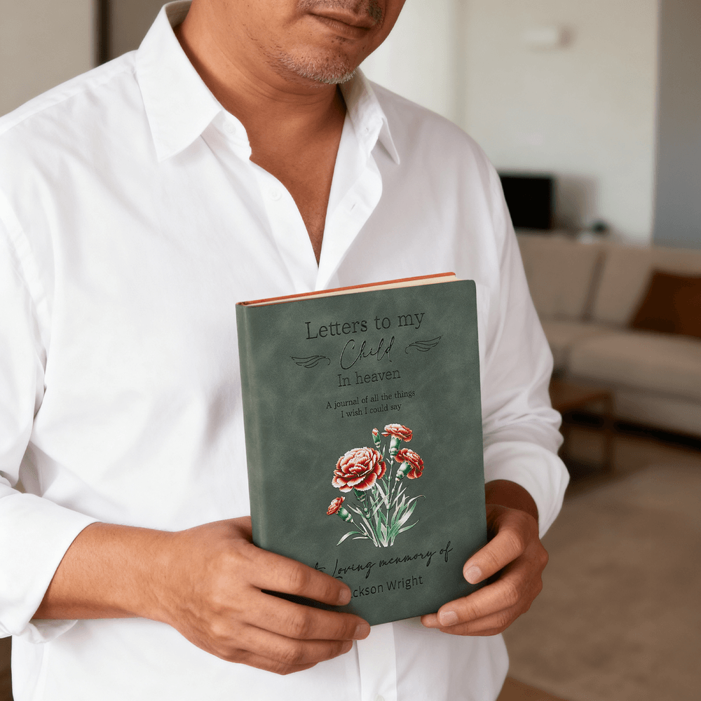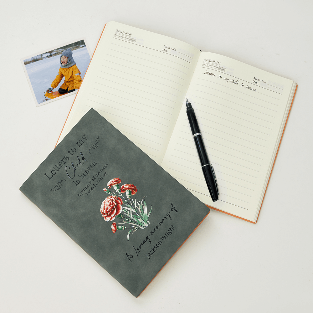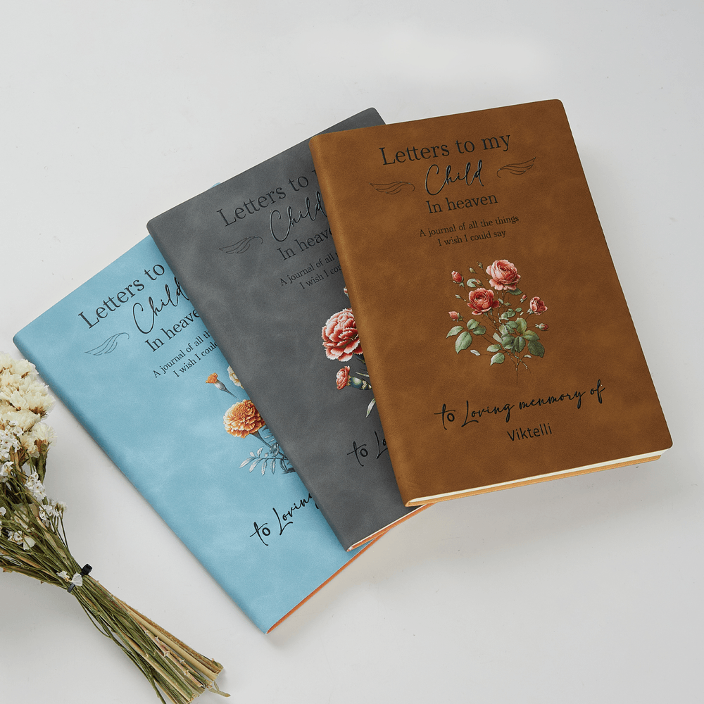This memorial journal is thoughtfully designed with a customizable name and a symbolic birth flower, offering a gentle and personal way to honor a child who is no longer here. Each flower carries its own meaning, turning the journal into a deeply intimate keepsake that reflects love, remembrance, and enduring connection.