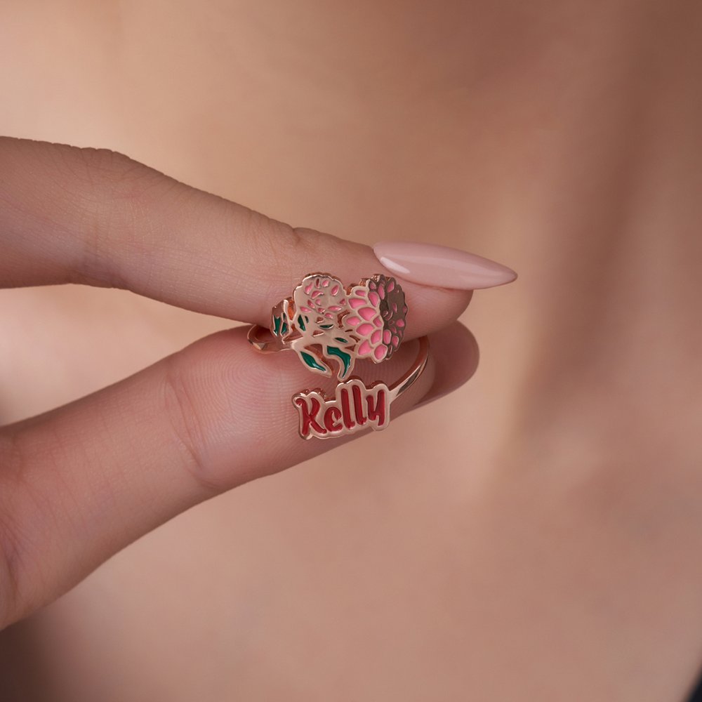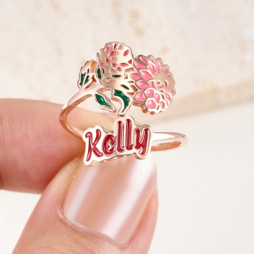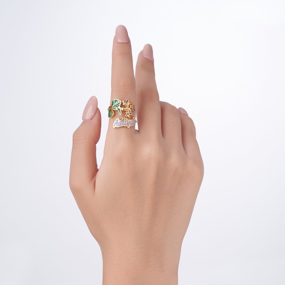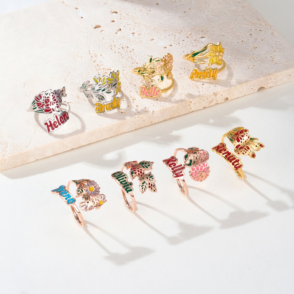 Each ring is inspired by the birth flower of a specific month. Every bloom not only represents a particular time of year but also carries profound emotional and symbolic meaning. A birth flower and a name, you can eternalize meaningful connections, creating a one-of-a-kind keepsake that speaks to the heart.