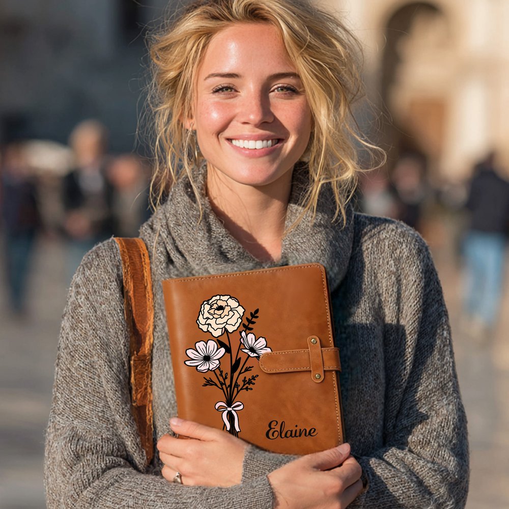 Features a retro-style minimalist birth flower bouquet design, with a bow tie adding a touch of cuteness and liveliness. Choose flowers based on your birth month to showcase your personal style, incorporating your name and unique creativity to create a one-of-a-kind notebook.