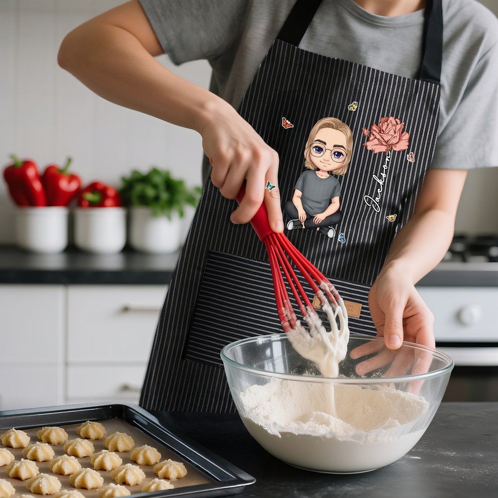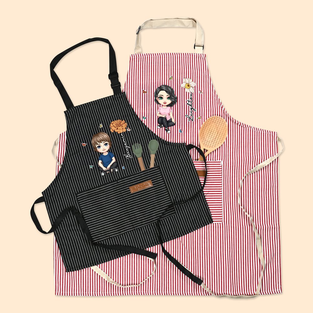 This apron is available in both children's and adult styles, designed for parent-child interaction to make cooking time fun and enjoyable. It features adorable, customized cartoon characters paired with meaningful birth flowers, making it truly eye-catching. With multiple colour options and Personalised names, it becomes a one-of-a-kind apron that reflects your unique style.