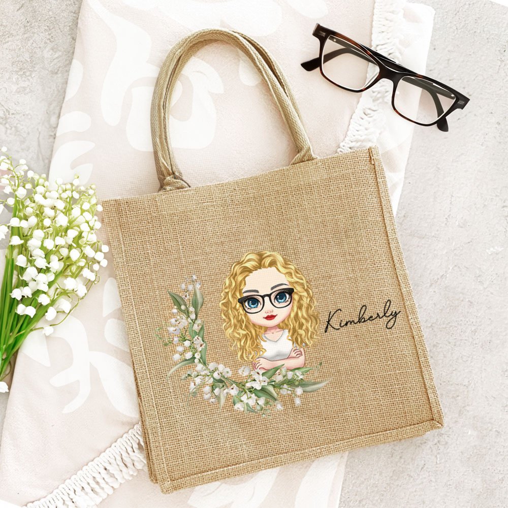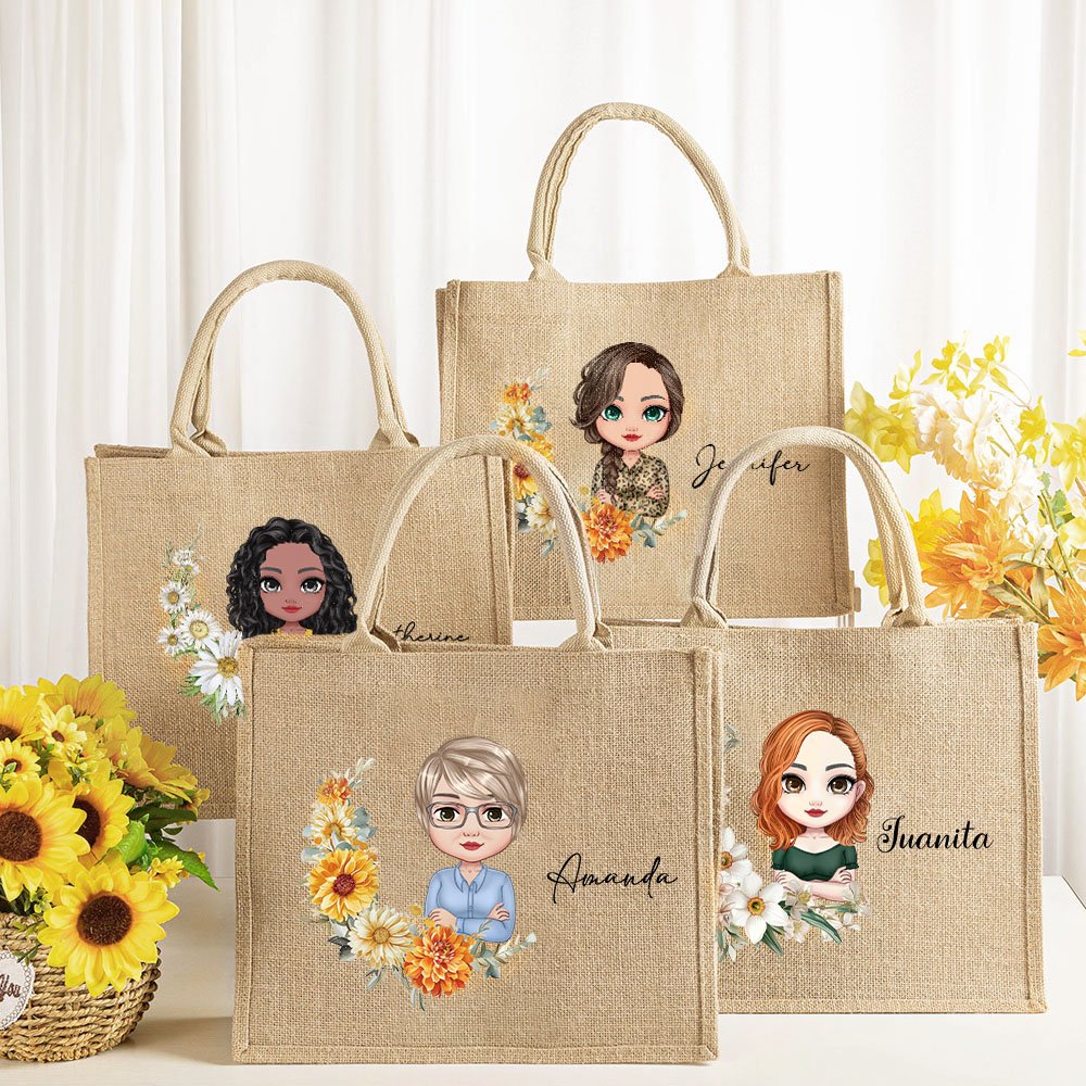 This large-capacity jute tote bag features a customizable cartoon character design, tailored to include a special name. Perfect for adding a personal touch to your gift, making it truly unique.