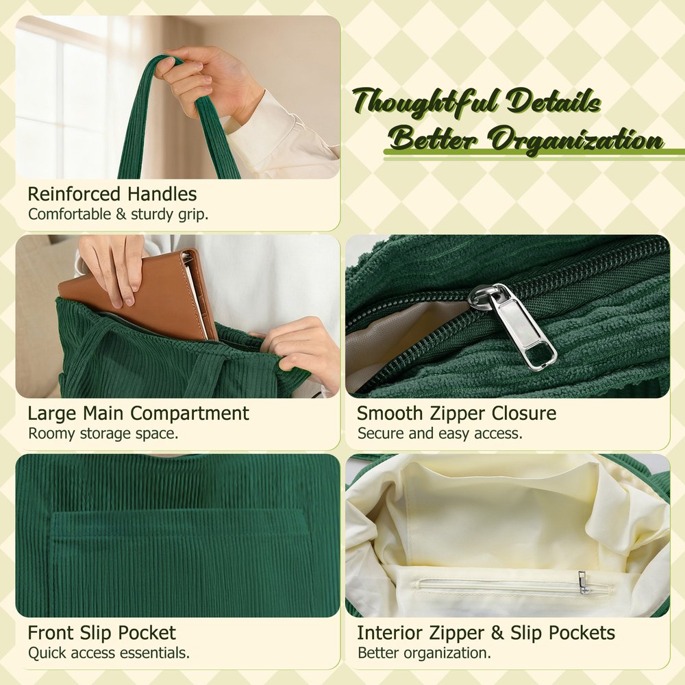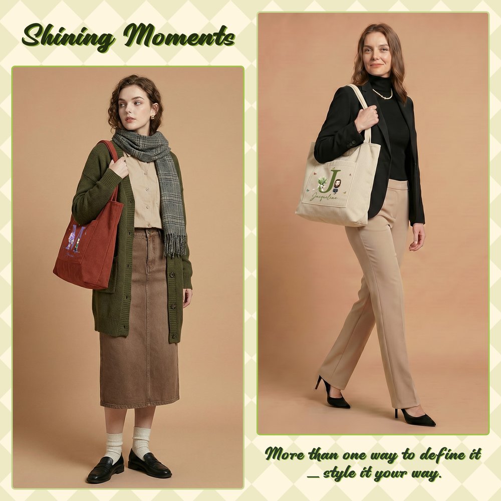 Made from high-quality corduroy material, this tote bag is stylish and durable. The soft texture of the corduroy provides a comfortable grip, while its sturdiness ensures it can withstand daily use. It's the perfect companion for shopping trips, work, or travel.