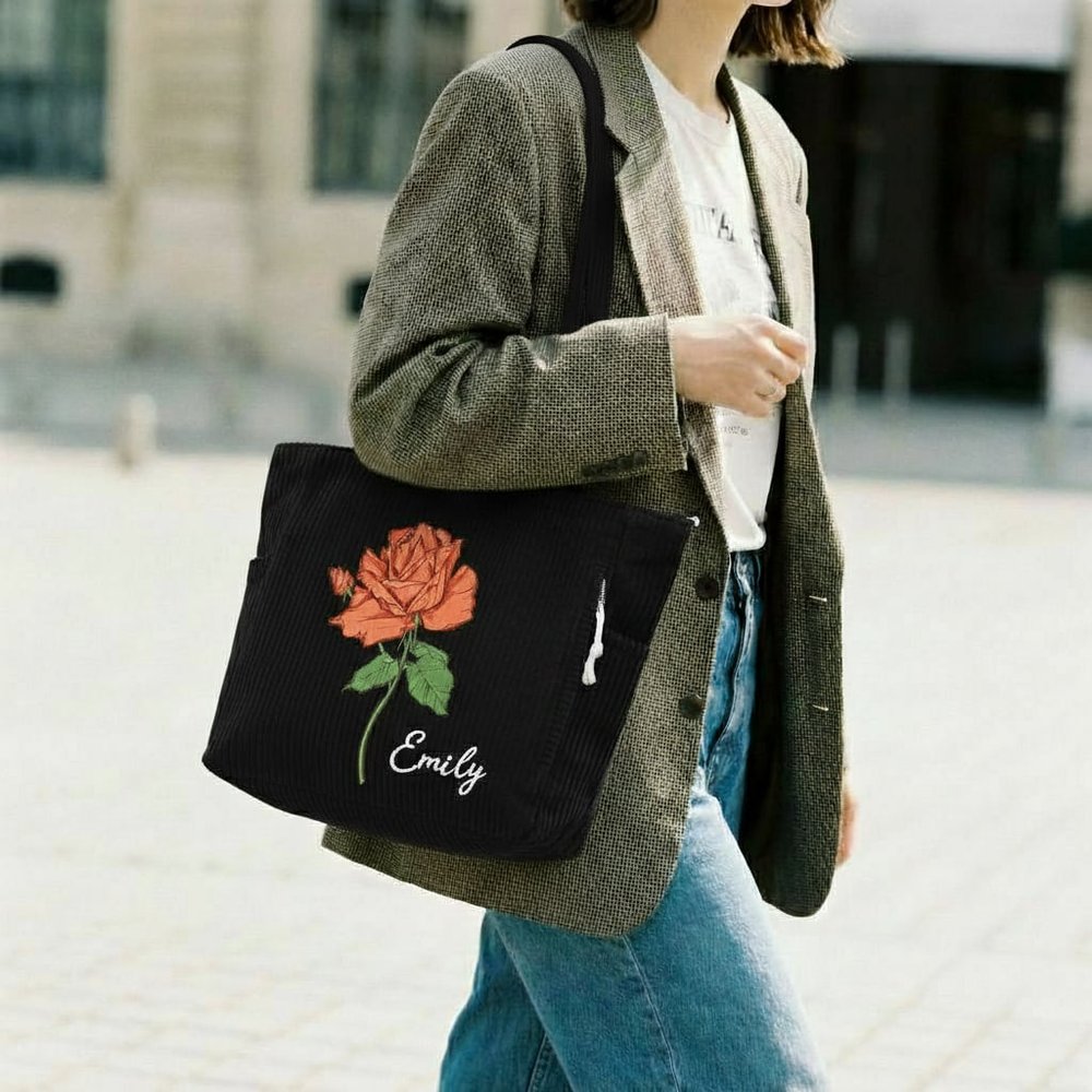 Centreed around the exclusive birth flower motif, this design pairs with personalised name customization. Its gentle, elegant style exudes a sense of personal ritual, precisely aligning with feminine aesthetic preferences. The corduroy fabric naturally evokes a vintage texture, elevating the everyday commuter bag beyond monotony into a distinctive accessory that blends visual appeal with commemorative significance.