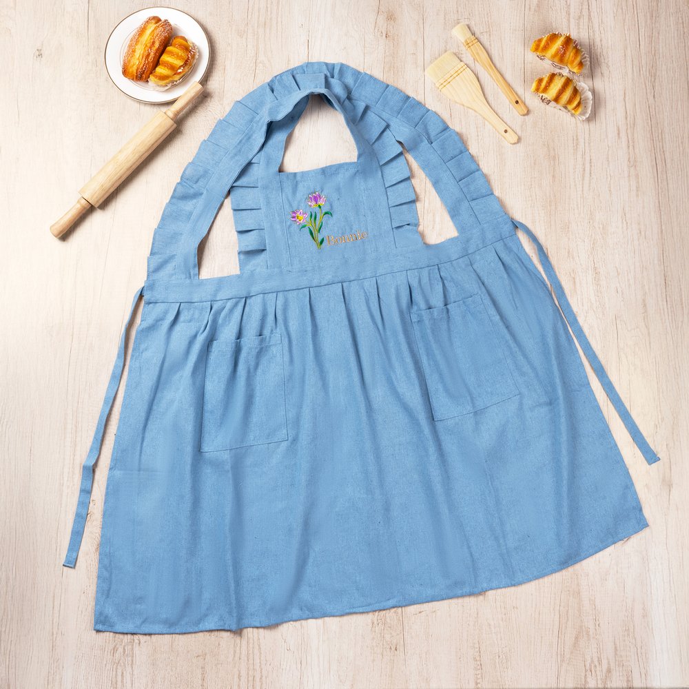 Centreed around embroidered birth flowers paired with a personalised name, the design features a sweet princess style with ruffles and delicate crisscross straps. Available in three colours, it blends individuality and femininity, combining aesthetics and practicality.