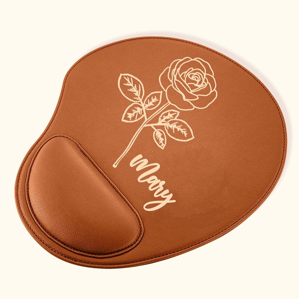 Personalised Birth Flower PU Mouse Pad with Name and Wrist Rest Computer Office Desk Accessory Gift for Friend Colleague