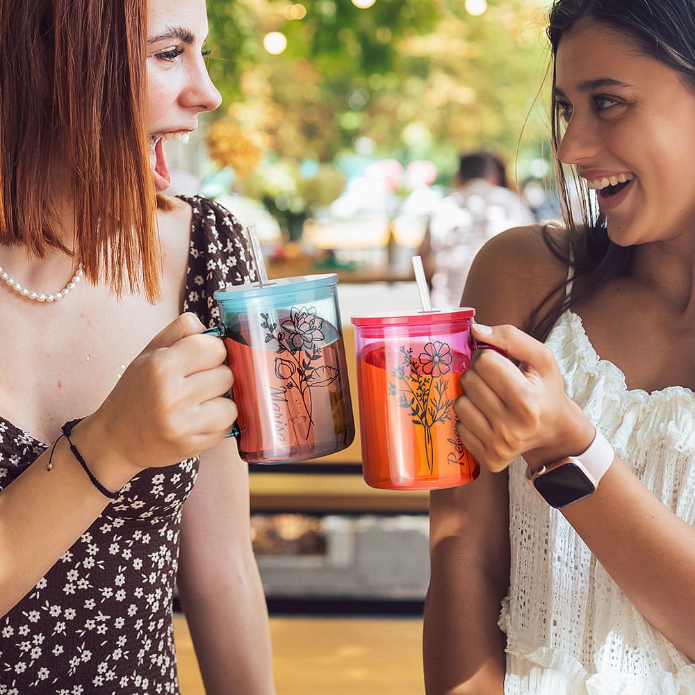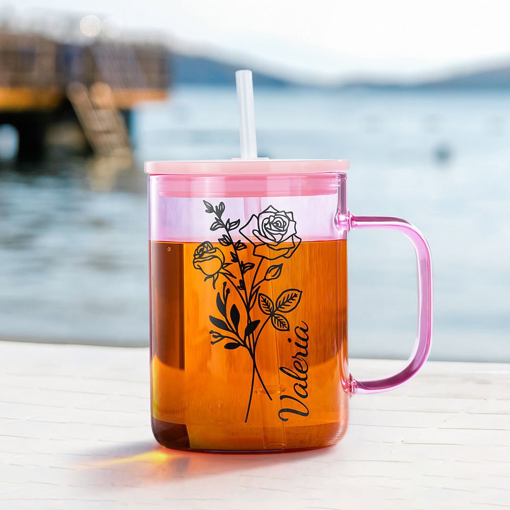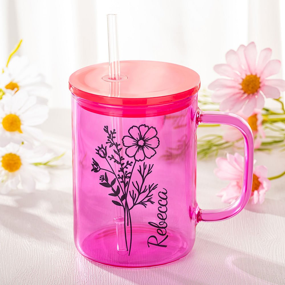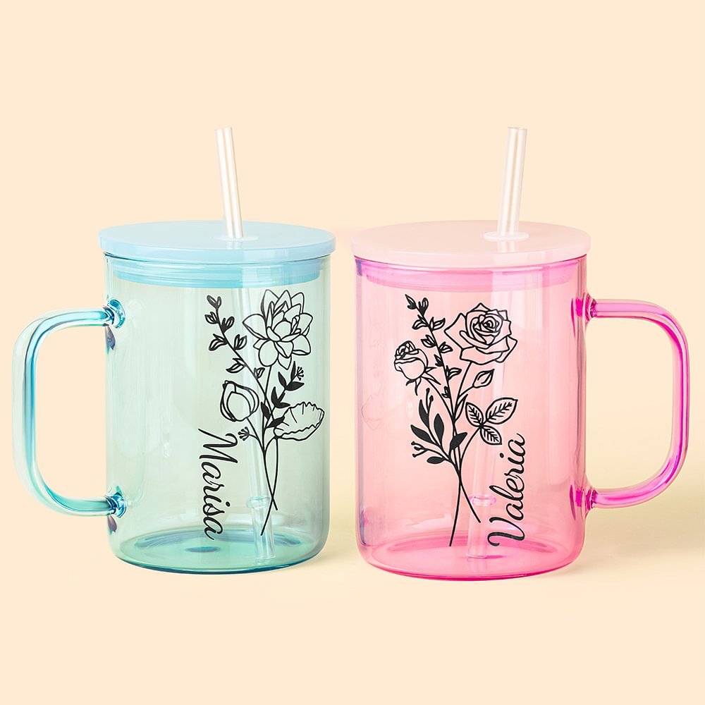 | Feature: | Heat resistant, with Straw and Lid, Birth Flower Design |