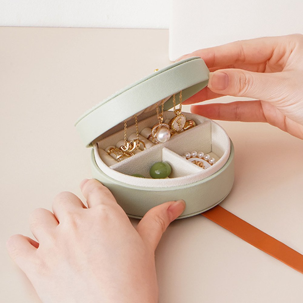 Crafted from high-quality PU leather, the case is both durable and stylish. The leather exterior gives it a luxurious look, ensuring it can withstand travel rigors. The material is soft yet sturdy enough to protect the jewellery inside.