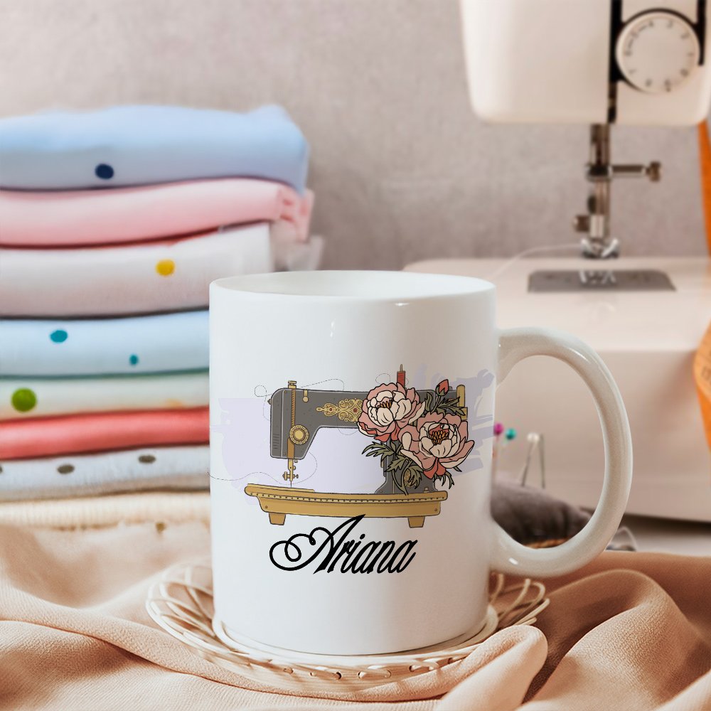 The design of this mug is inspired by the birth flowers of each month, complemented by a classic sewing machine pattern that showcases a unique artistic flair. Each mug can be customized according to personal preferences, allowing you to select the corresponding birth flower for the month and add a name. Enjoy your hot beverages while experiencing a distinctive touch of personalization.