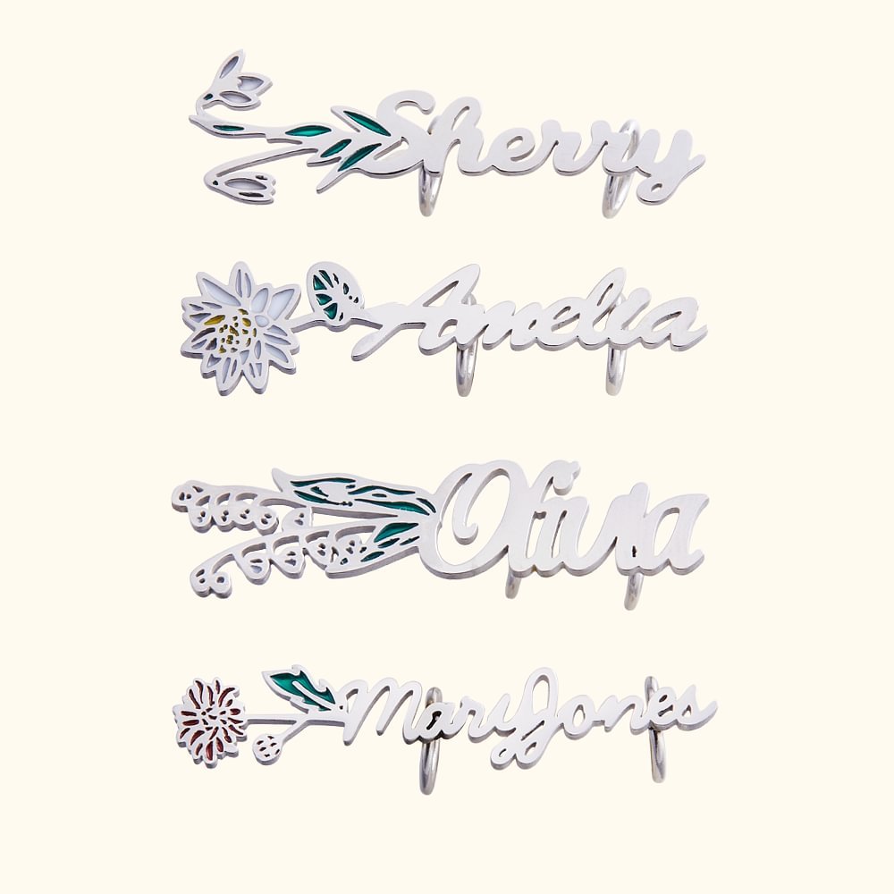 Sporting the design of birth flowers, these shoe buckles add personal flair to your footwear. Choose your or your loved one's birth flowers and customize them with a name.