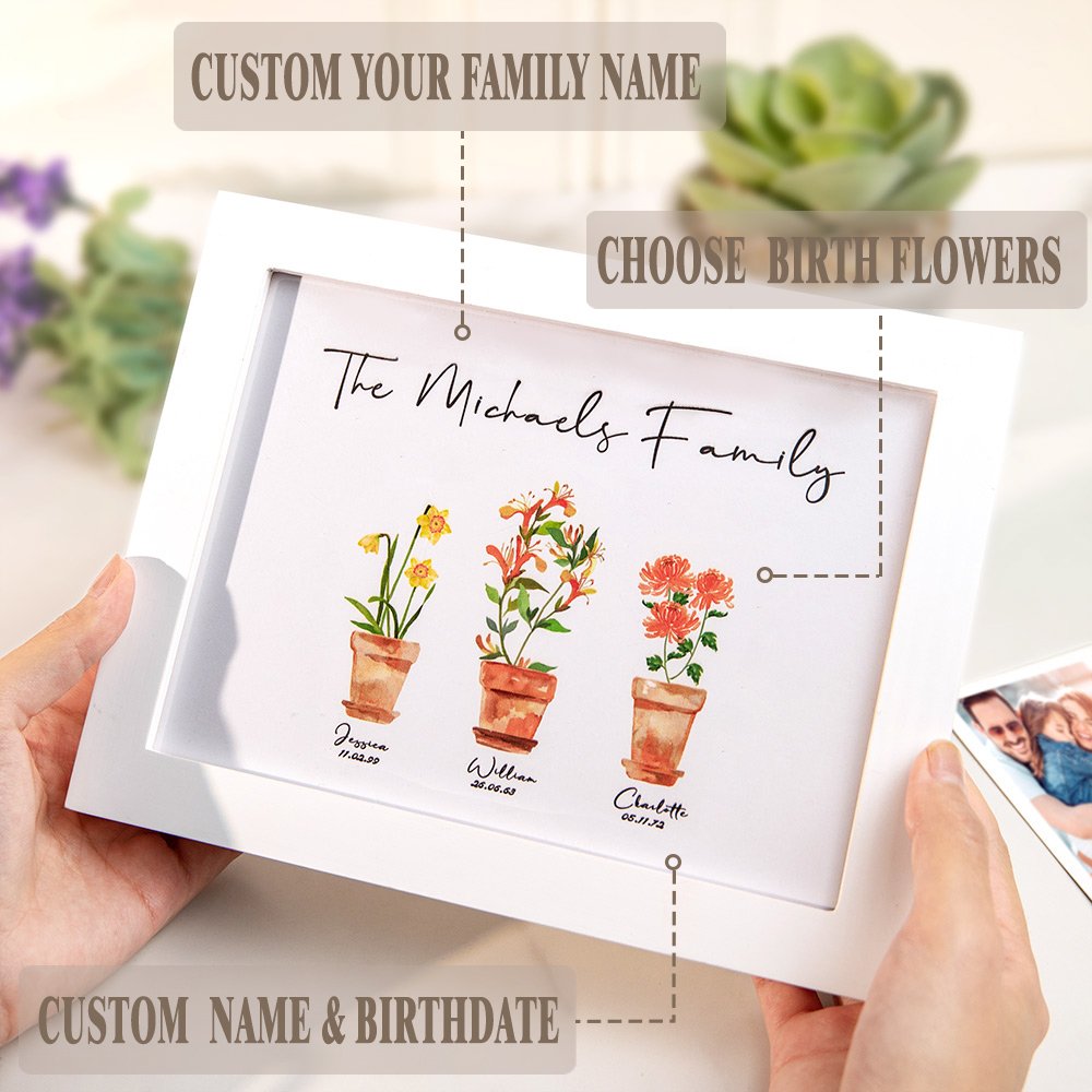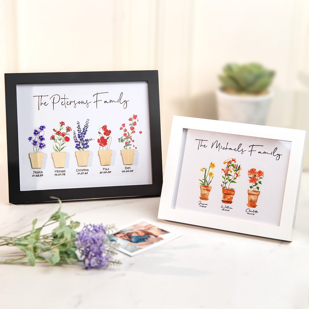 •One birth flower stands for one family member in the photo frame. You can customize 3-8 people on one printing paper. The flower pot can be selected to be made with printing or wooden material.