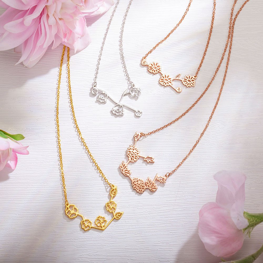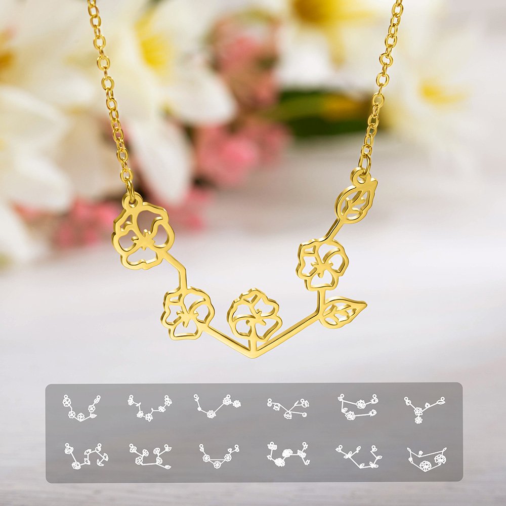 Customize your own unique zodiac sign and birth flower necklace.
