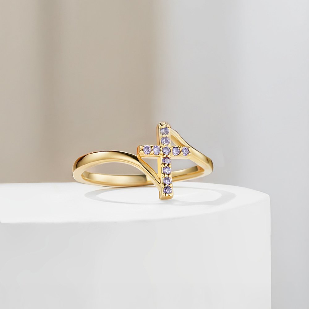 This ring features a solemn and sacred cross, bringing you confidence and encouragement. Adorned with delicate customized birthstones, the cross stands as a lasting testament to faith and individuality, creating a meaningful beauty.