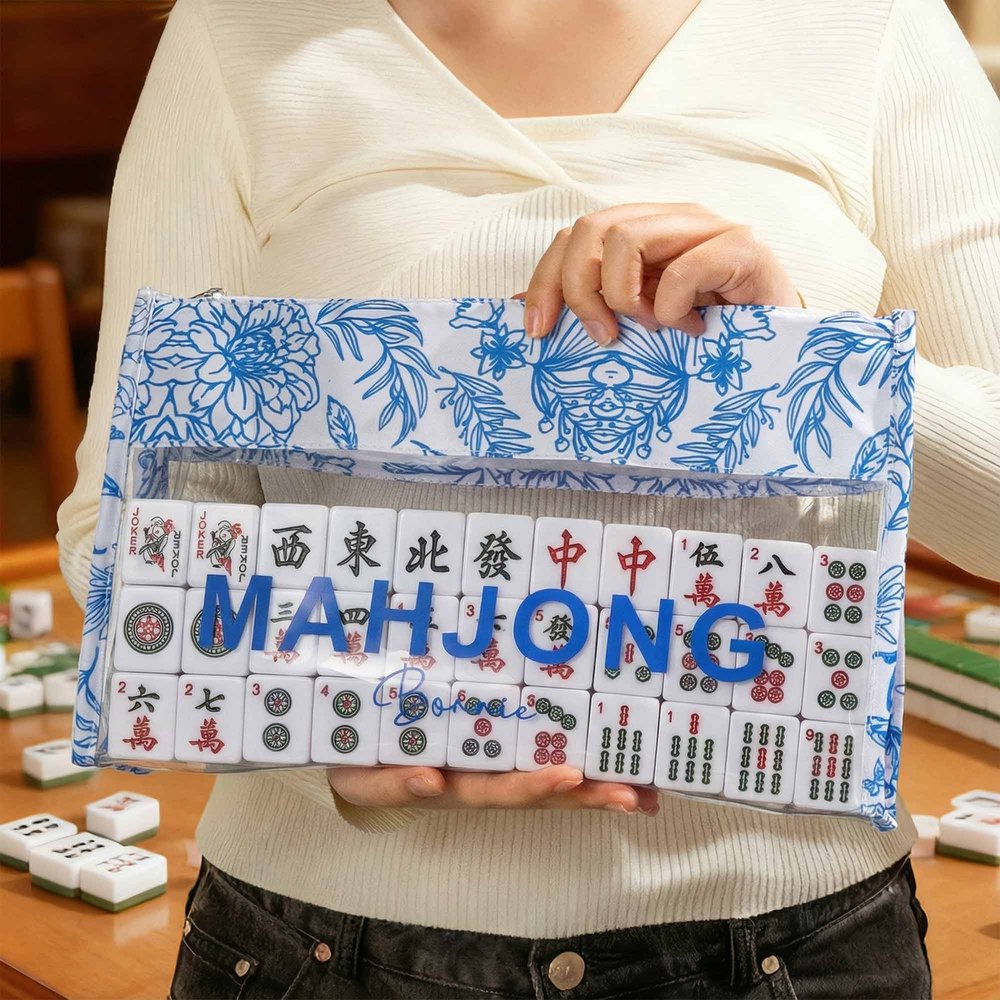 This storage bag blends traditional Chinese blue-and-white porcelain patterns with classic mahjong-themed design, plus a custom name on the transparent panel. The fusion of cultural aesthetics and personalised details turns a functional bag into a unique, stylish accessory for mahjong lovers.