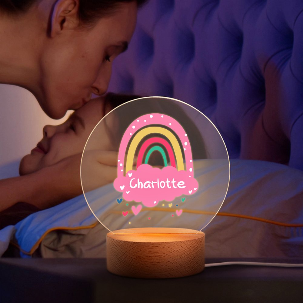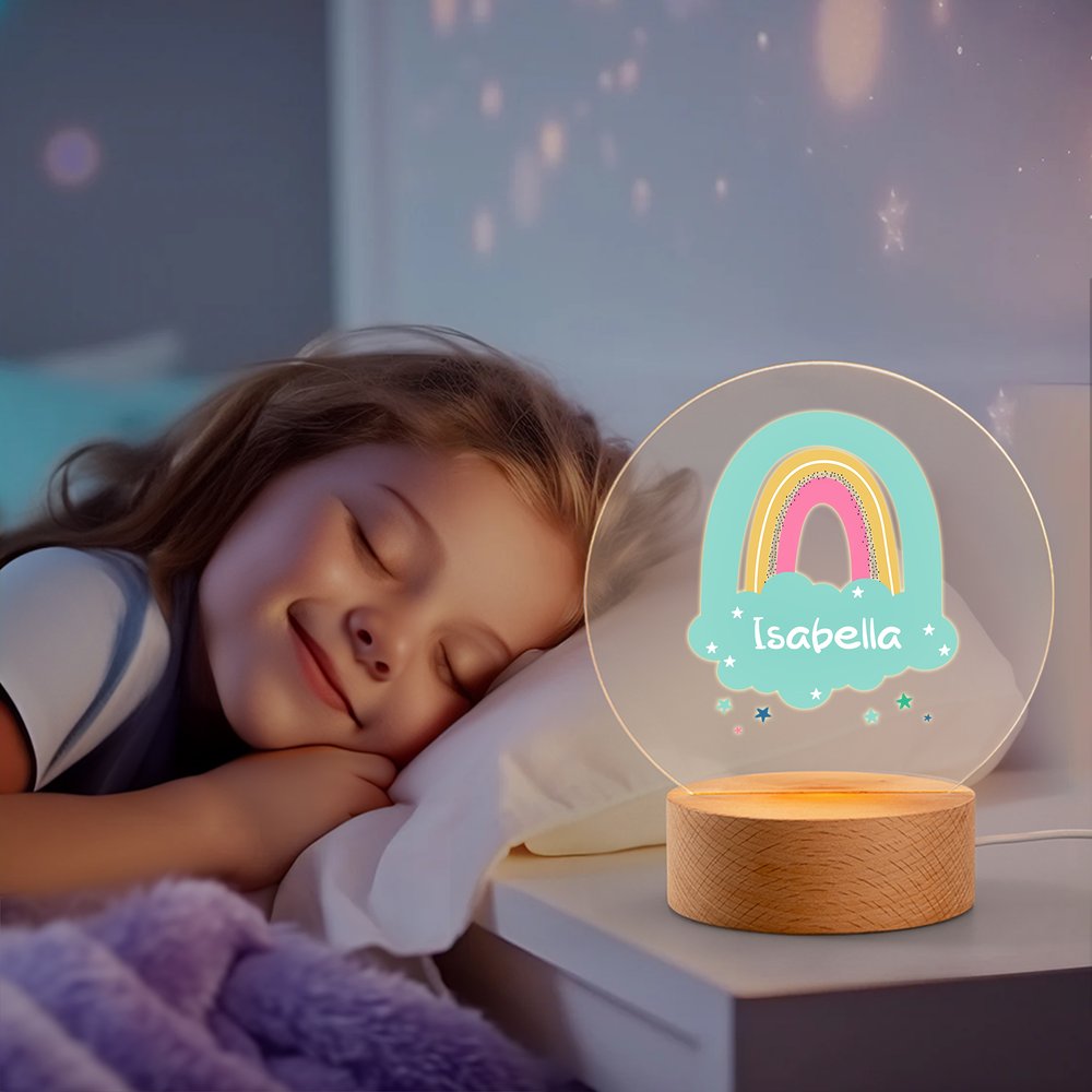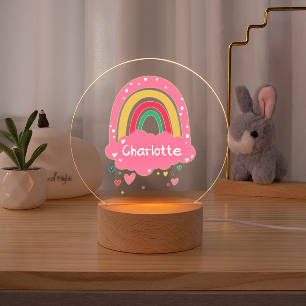 This night light showcases a captivating bohemian-style design of dreamy rainbows and clouds, with your kid's name Personalised to add a unique touch. The rainbow and cloud motif turns the night light into a whimsical statement piece, where warm illumination meets playful art, crafting a cozy haven that sparks imagination.