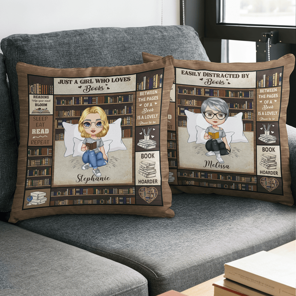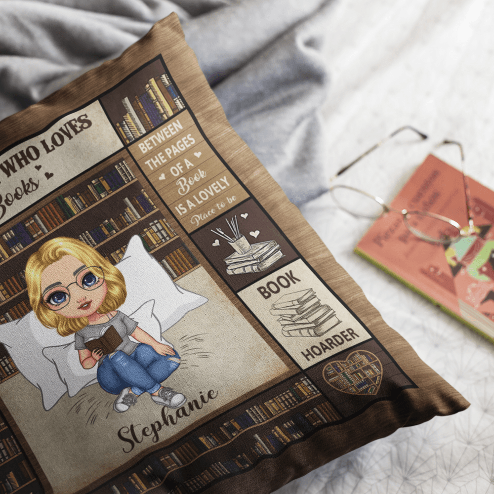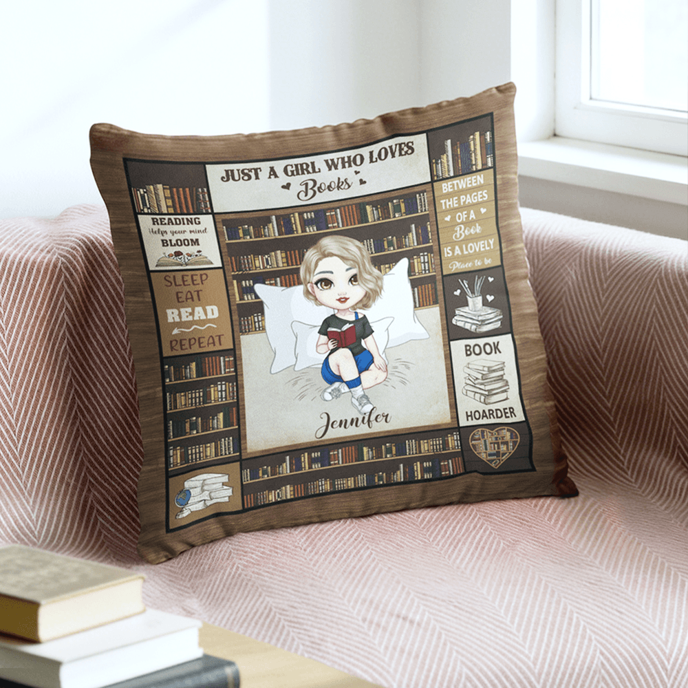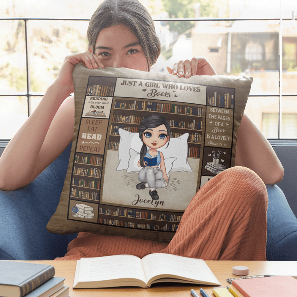 Featuring a charming female cartoon character alongside customizable elements, such as your loved one's name and a book, this cushion is designed specifically for book lovers. The delightful imagery adds a playful touch to any decor while celebrating the joys of reading and storytelling.