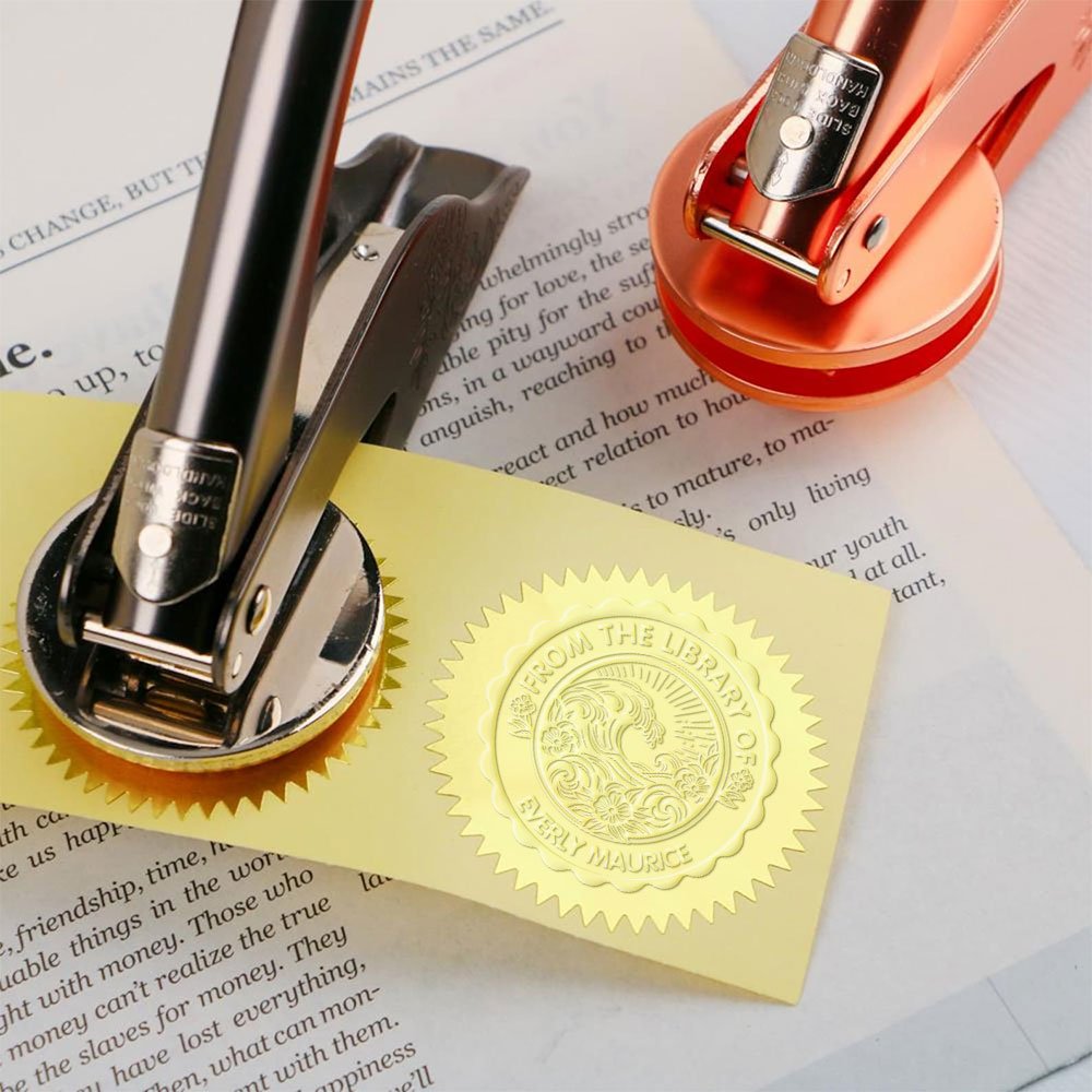 This embosser stamp is not just for books, but for any item you want to leave your mark on. Use it to emboss your name or logo on envelopes, journals, letters, certificates, and more. It's a versatile tool that adds a touch of elegance and professionalism to every piece of correspondence. From personal libraries to professional offices, this stamp is a must-have for any book lover or writer who values uniqueness and style.